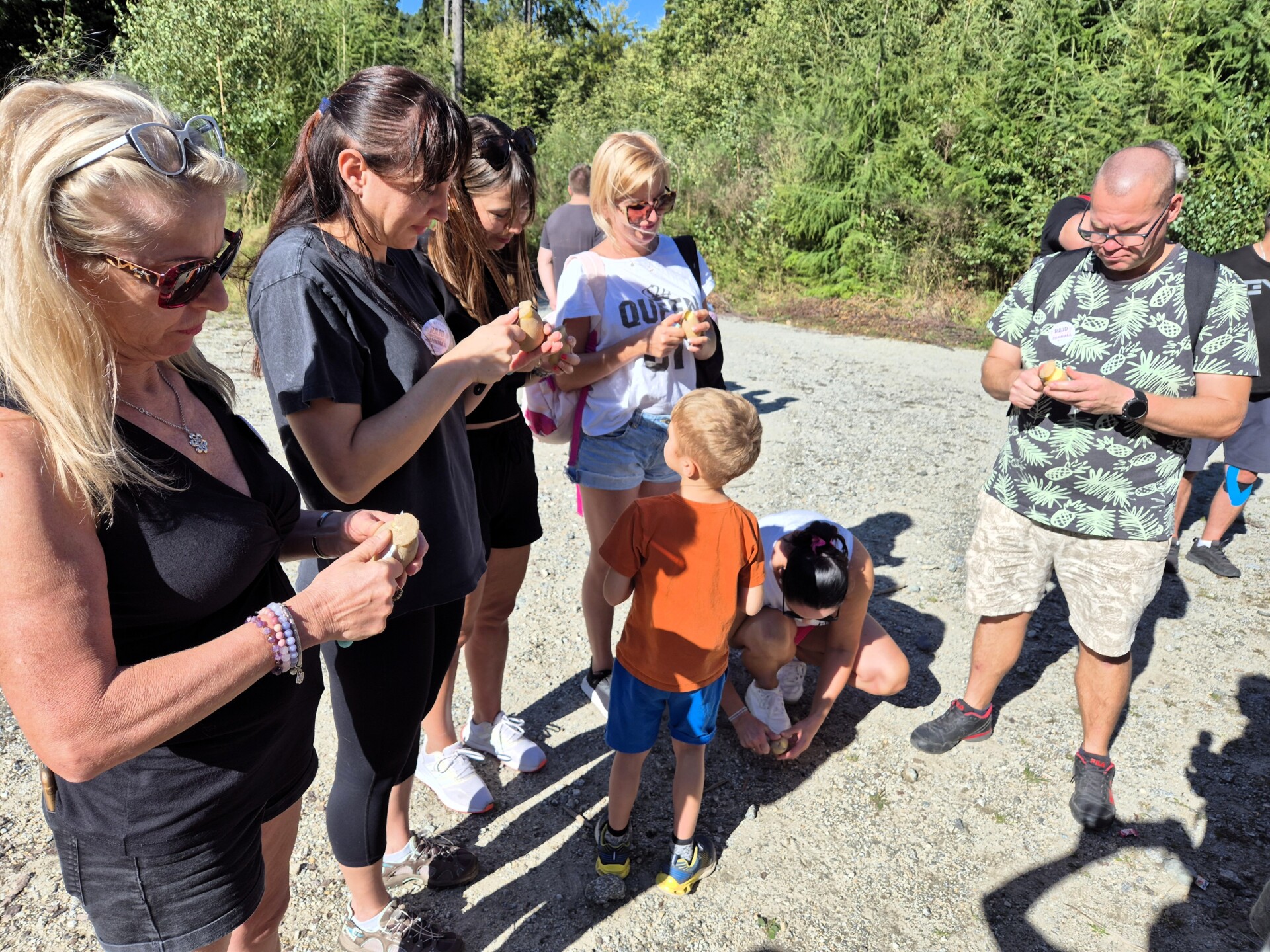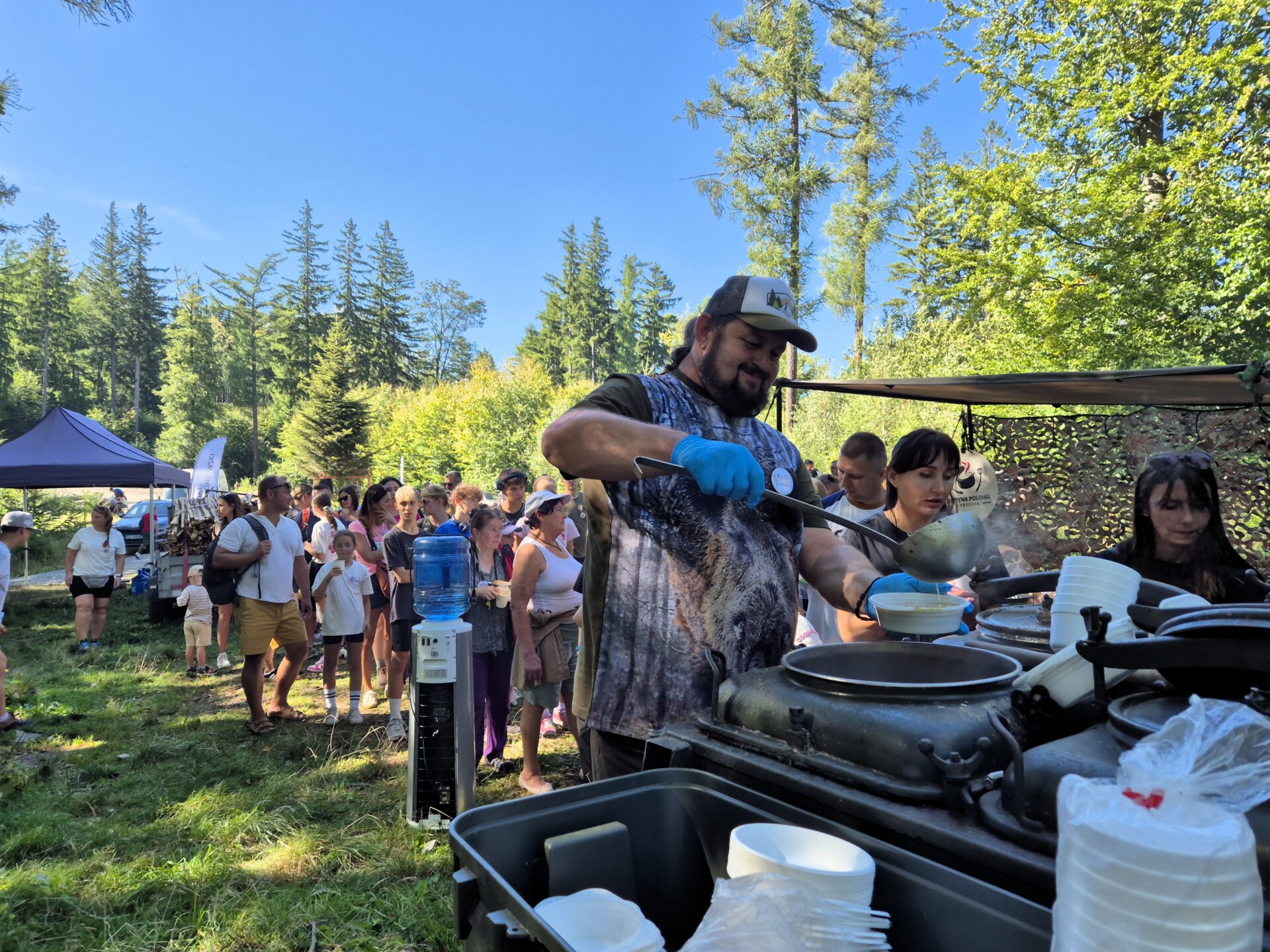 Na zmęczonych wędrowców czekała gorąca grochówka oraz ziemniaki pieczone w żarze ogniska. Wielu turystów przyniosło ze sobą kiełbaski, które z radością upiekli na przygotowanych paleniskach. Wspólny posiłek, rozmowy i śmiech sprawiły, że atmosfera od pierwszych chwil była niezwykle serdeczna i rodzinna.
