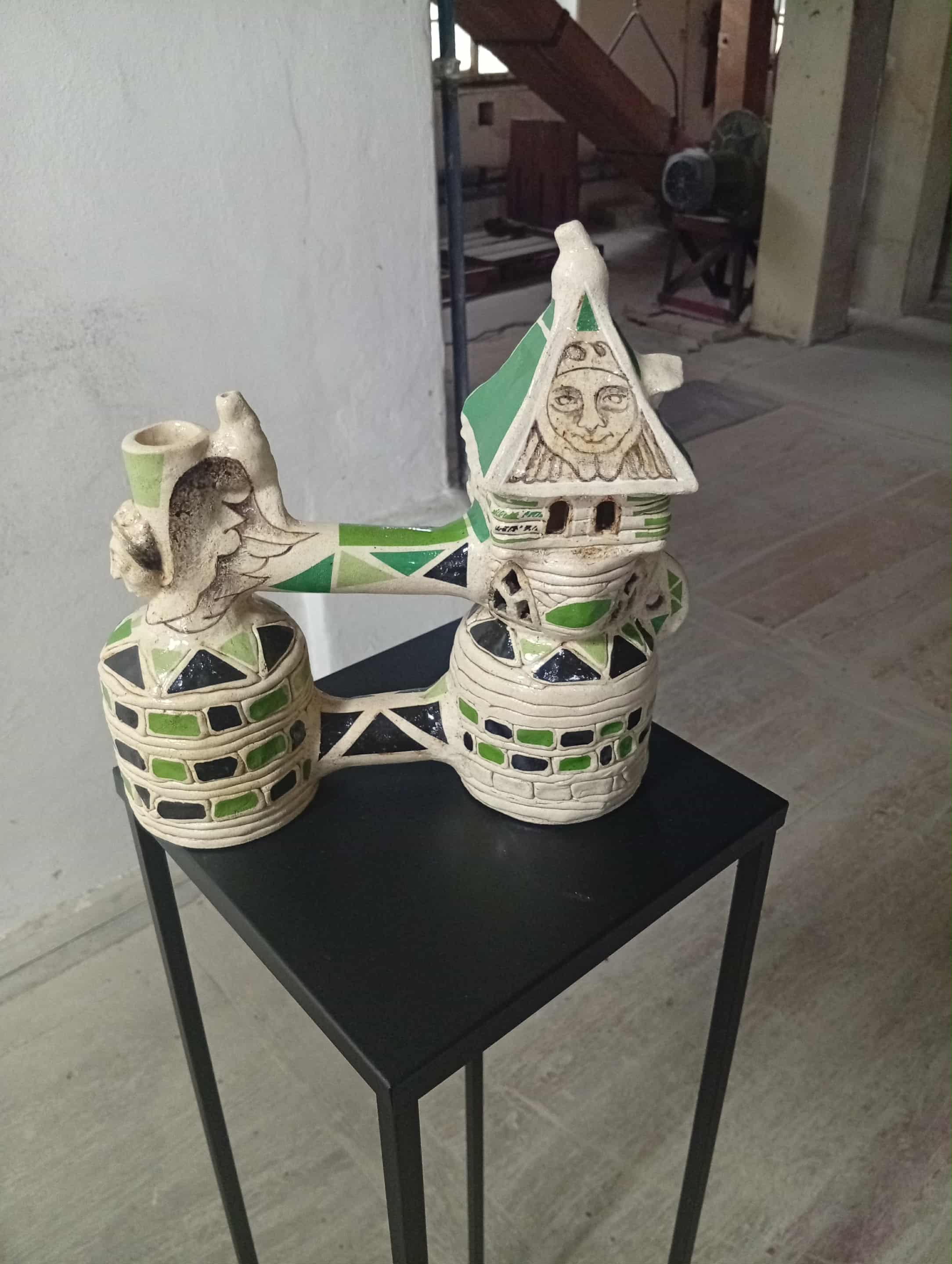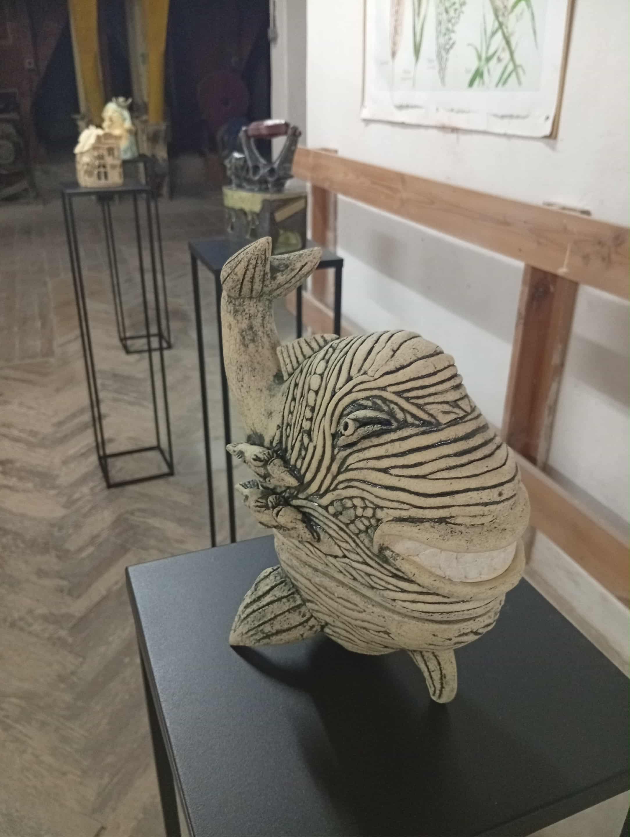 Olena Surina to absolwentka Akademii Sztuk Pięknych we Lwowie na kierunku malarstwo monumentalne. Jakby na przekór artystka tworzy teraz małe formy z ceramiki. Wśród nich są urocze domki, a także zwierzęta i postacie ludzie, ale i bajkowe – jak syrena, która jest… gwizdkiem na wodę. Twórczyni ceramicznego miniaturowego świata do Polski przyjechała 20 lat temu. A lepi z gliny od dziecka. Dzieła Oleny Suriny można teraz oglądać w surowych wnętrzach Młyna Hilberta przy okazji zwiedzania obiektu. Wystawa potrwa do końca listopada.