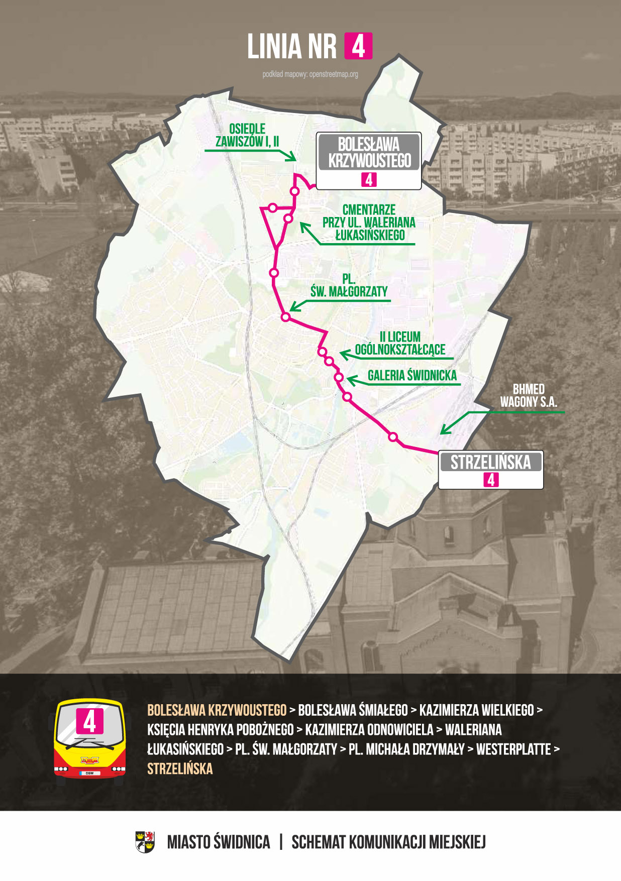 Od 2 listopada uruchomiona zostanie nowa linia nr 4 o przebiegu: B. Krzywoustego – pl. św. Małgorzaty – pl. Michała Drzymały – Strzelińska. Połączenie to powstało z myślą o mieszkańcach osiedla Zawiszów, którzy dojeżdżają w rejon ul. Strzelińskiej. Linia stanowi szybszą alternatywę dla zlikwidowanego połączenia linii nr 2 w tym kierunku.