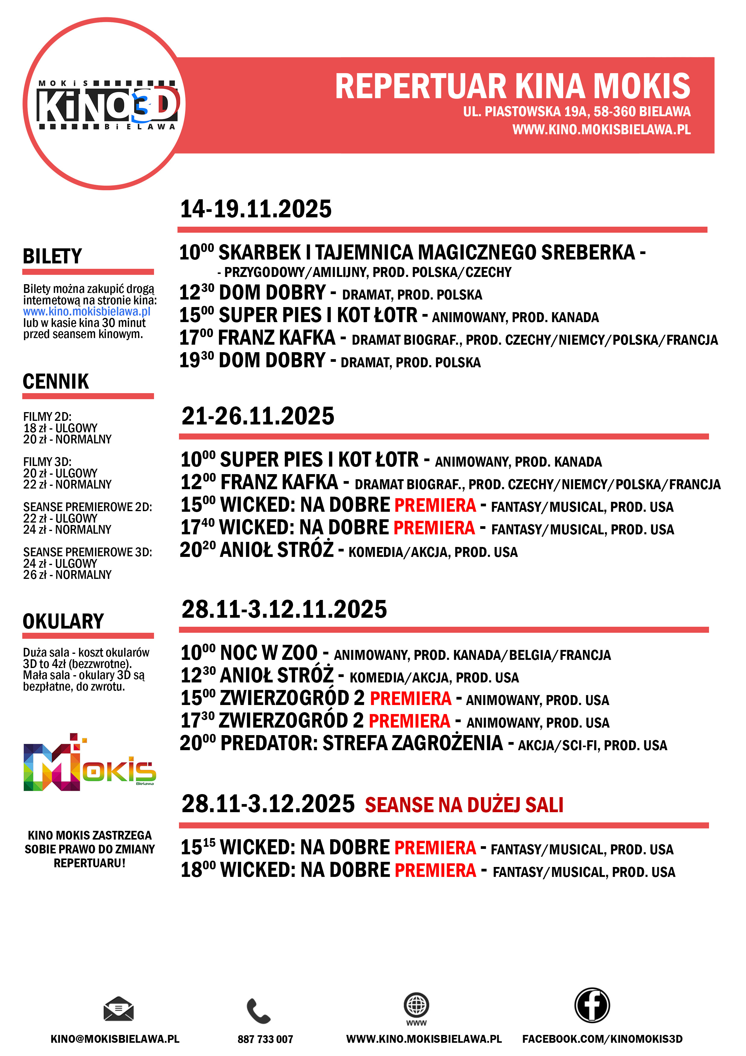 Kino MOKiS w Bielawie zaprasza w listopadzie na seanse.