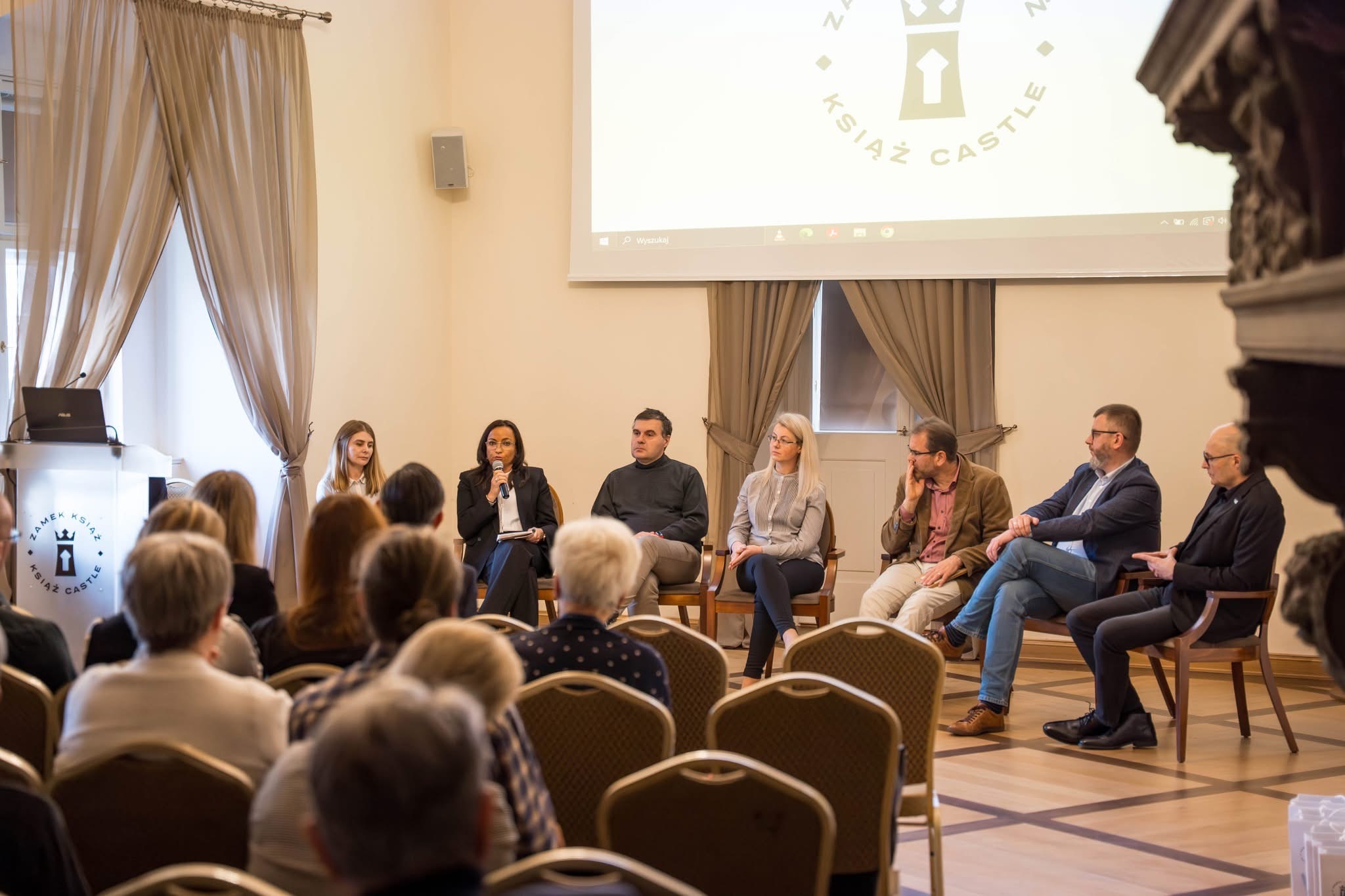 Pierwszy panel – „Zarządzanie miejscami pamięci” – otworzył dyskusję na temat odpowiedzialności instytucji publicznych za prowadzenie i ochronę miejsc pamięci. Eksperci zwracali uwagę, że równowaga między udostępnianiem przestrzeni turystycznej a zachowaniem jej autentycznego charakteru jest jednym z kluczowych wyzwań współczesnej muzeologii. „W roku zakończenia II wojny światowej - najtragiczniejszego konfliktu w dziejach – wielokrotnie upamiętnialiśmy jej ofiary, także te związane z majątkiem Książ. Przykładem są właśnie konferencja „Z godnością…”, majowa uroczystość w miejscu byłego niemieckiego nazistowskiego obozu AL Fürstenstein oraz narracja prezentowana w podziemiach z czasów wojny” – podkreśla prezeska zamku, Dorota Karolewska.