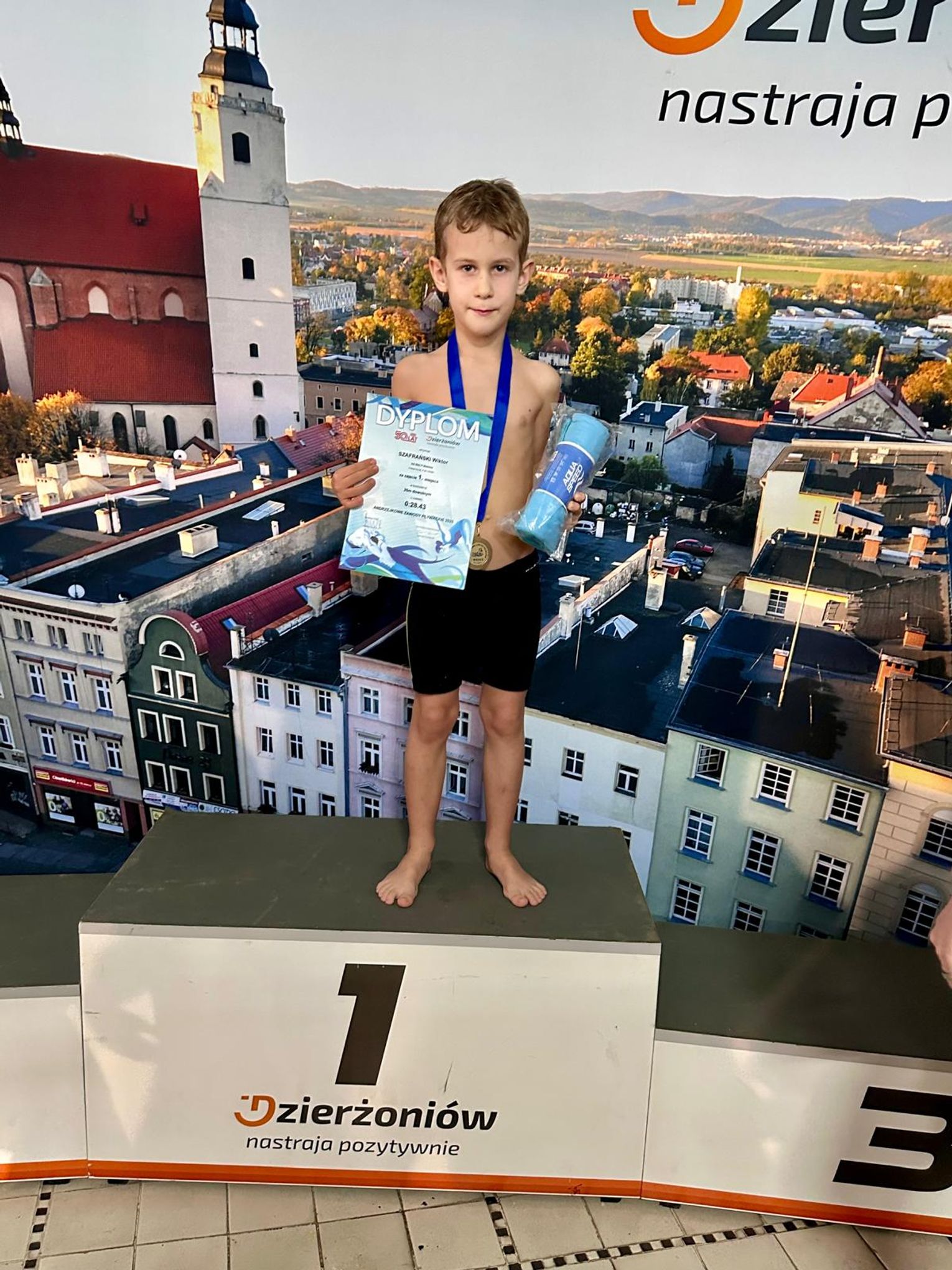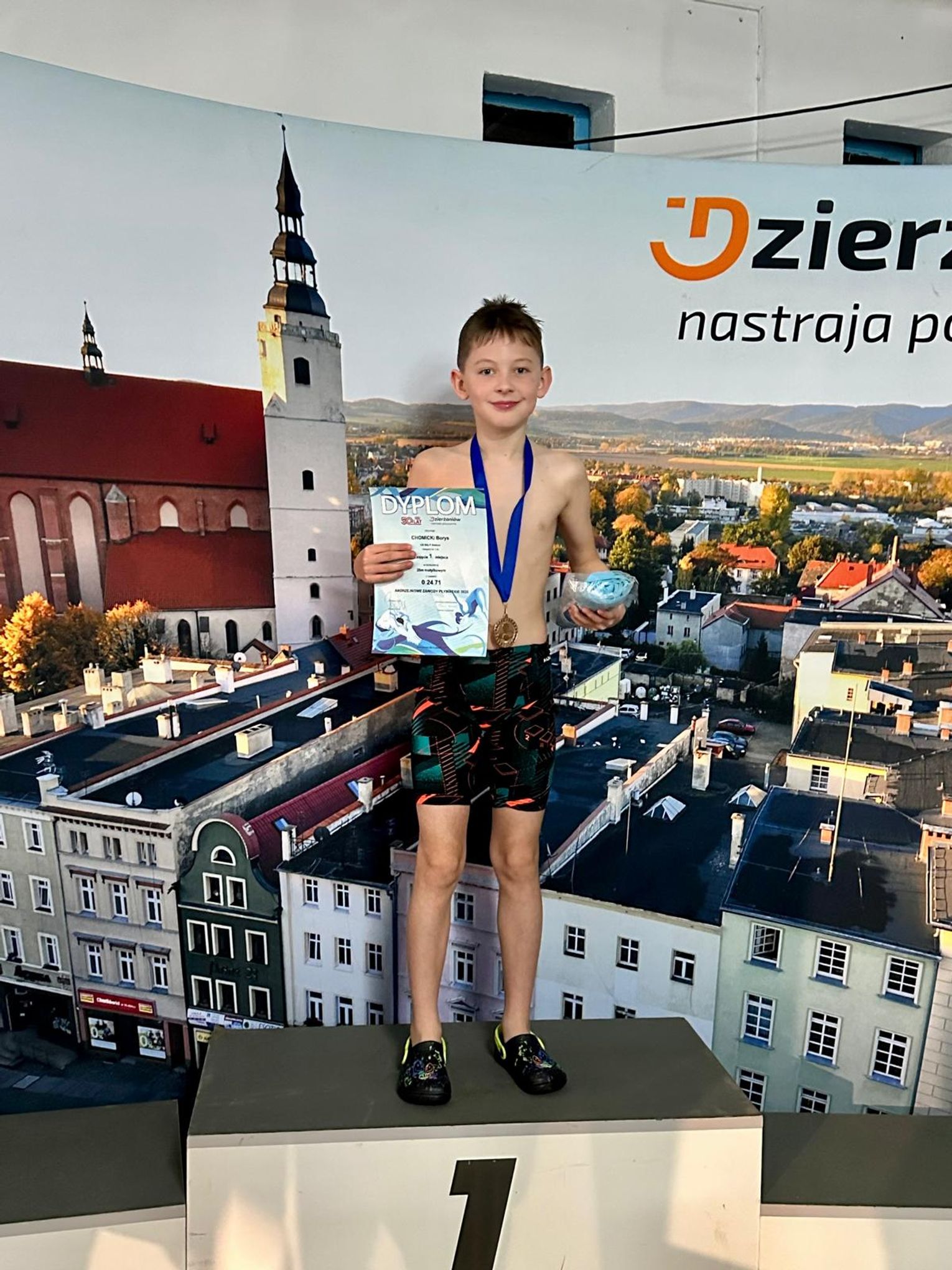 Borys CHOMICKI 1.miejsce 25m st. motylkowym (24.71s.), 1.miejsce 50m st. klasycznym (53.92s.)