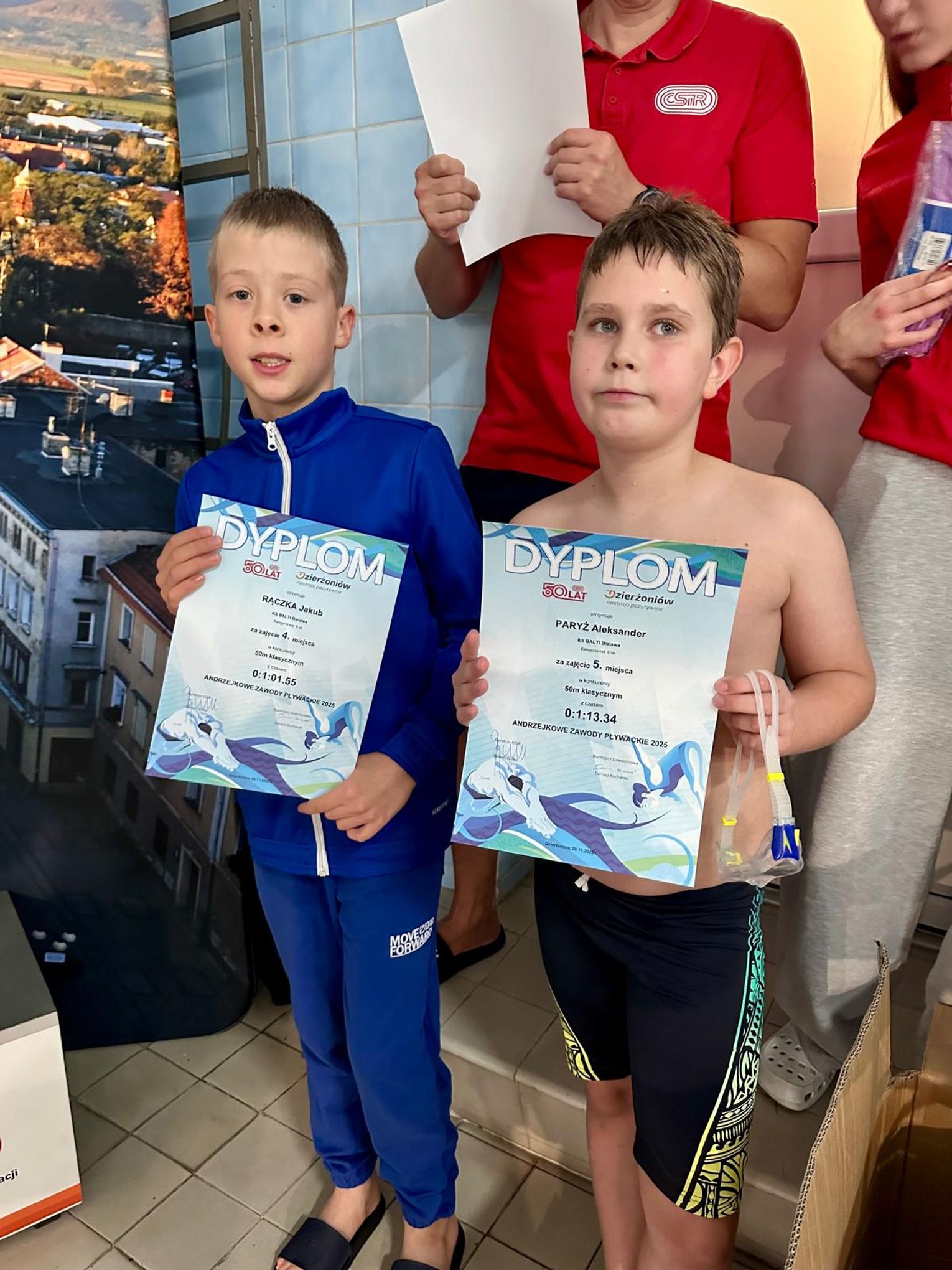Jakub RĄCZKA 1.miejsce 50m st. grzbietowym (46.41s.), 4.miejsce 50m st. klasycznym (1:01.55s.)