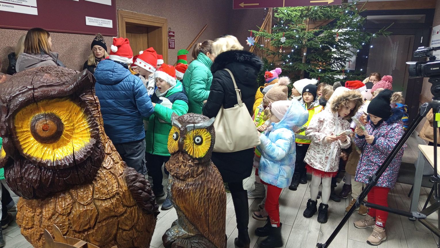 5 grudnia na specjalne zaproszenie Pani Burmistrz Doroty Koniecznej Enozel do Urzędu Miasta, zawitali przedszkolaki i uczniowie z mikołajkową wizytą by wspólnie przystroić świąteczne drzewko. Spotkanie przebiegło w radosnej atmosferze, a dzieci z entuzjazmem wieszały własnoręcznie wykonane ozdoby na drzewku świątecznym.