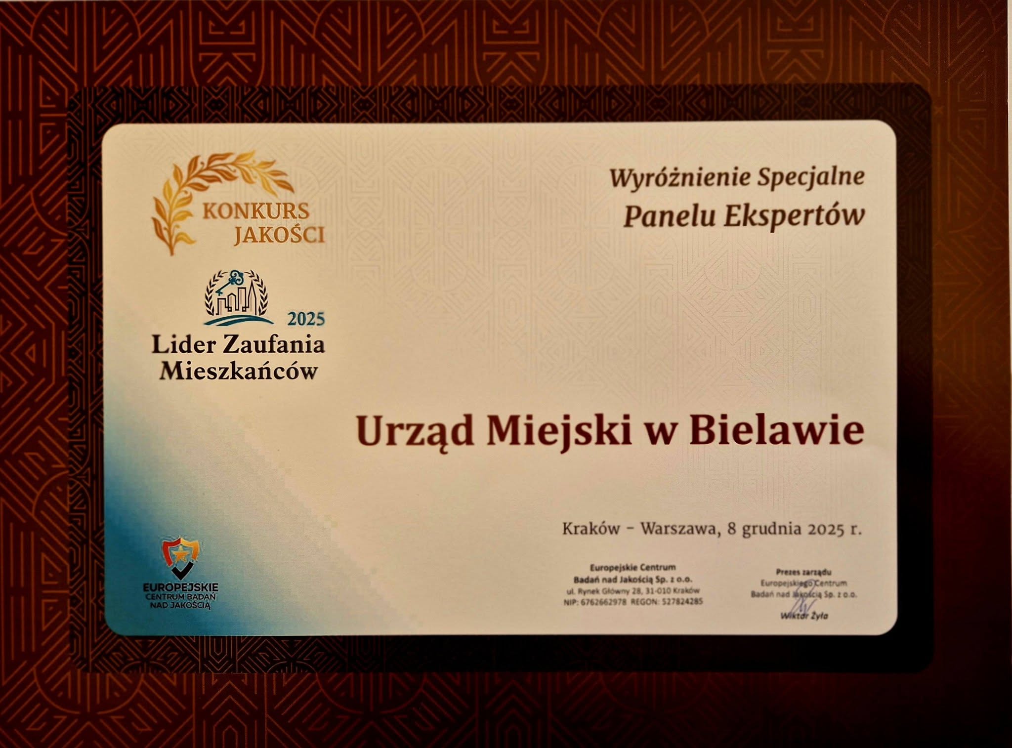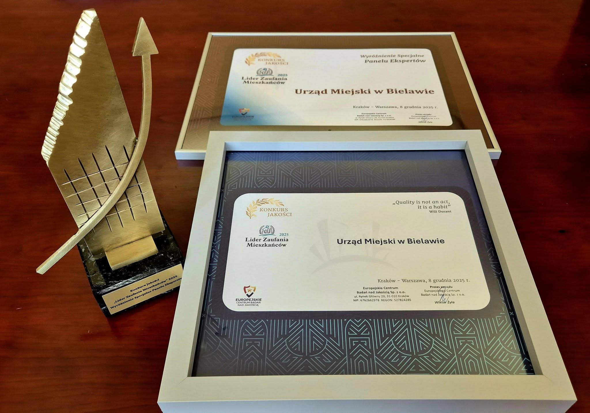 Otrzymany laur jest docenieniem dotychczasowego zaangażowania i wkładu pracy, a jednocześnie motywacją do dalszego doskonalenia i podnoszenia jakości usług publicznych w Gminie Bielawa.