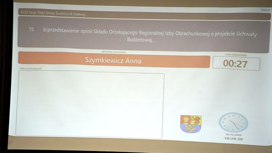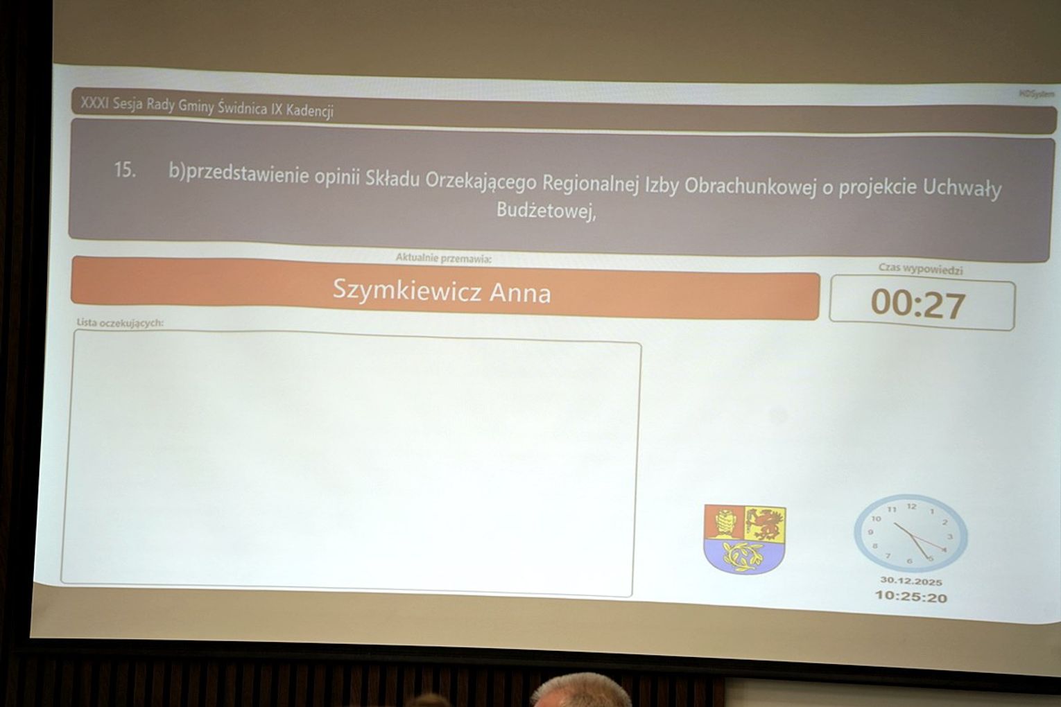 Budżet na 2026 rok został jednomyślnie uchwalony podczas wtorkowej XXXI sesji Rady Gminy Świdnica 30 grudnia 2025 roku. „Za” zagłosowało głosowało 12 radnych.