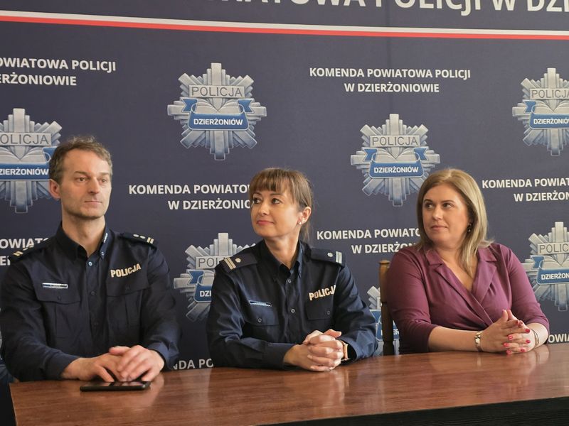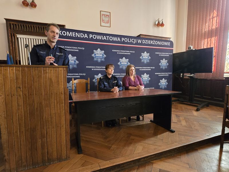 I Zastępca Komendanta Powiatowego Policji w Dzierżoniowie, młodszy inspektor Piotr Jaros, przybliżył zagadnienia związane z funkcjonowaniem pionów prewencyjnych, podkreślając znaczenie codziennej służby patrolowej i działań profilaktycznych wpływających na poziom bezpieczeństwa mieszkańców powiatu.