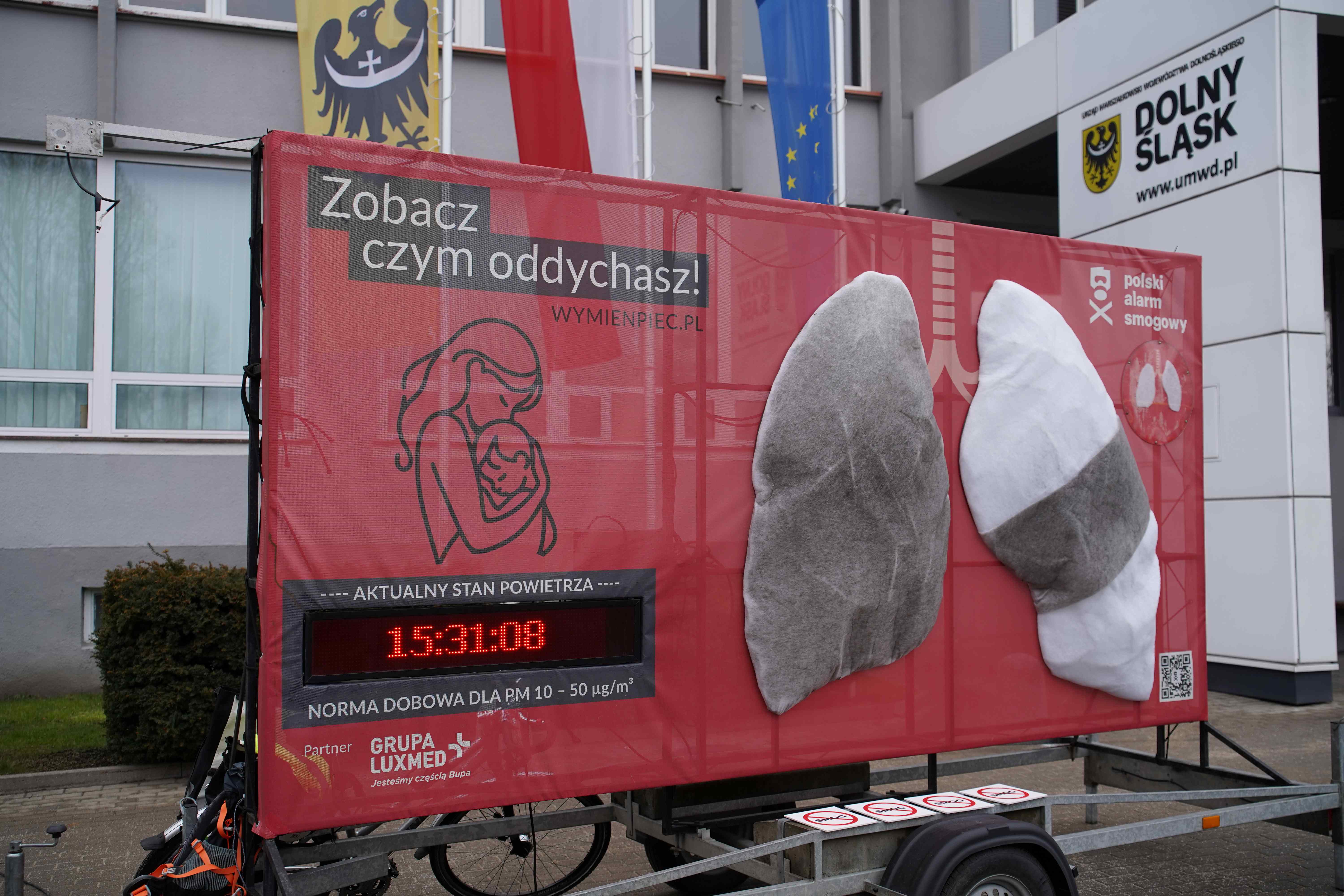 Wyjątkowo wysokie stężenia pyłów zawieszonych, jakie pojawiły się w Polsce w styczniu 2026 pokazały, że daleko jesteśmy od rozwiązania problemu smogowych zim w Polsce. Ponad sto tysięcy “kopciuchów” dymi przez cały sezon grzewczy na Dolnym Śląsku. Wystarczą niekorzystne warunki pogodowe, aby stężenia pyłów zawieszonych wróciły do wartości niewidzianych od wielu lat. Mobilne płuca to nie tylko akcja edukacyjna - to sygnał alarmowy i apel o skuteczne działania – w tym o skuteczne kontrole przestrzegania prawa. Jakość powietrza w regionie stopniowo się poprawia, ale do osiągnięcia bezpiecznych dla zdrowia poziomów zanieczyszczeń, jeszcze dużo brakuje.