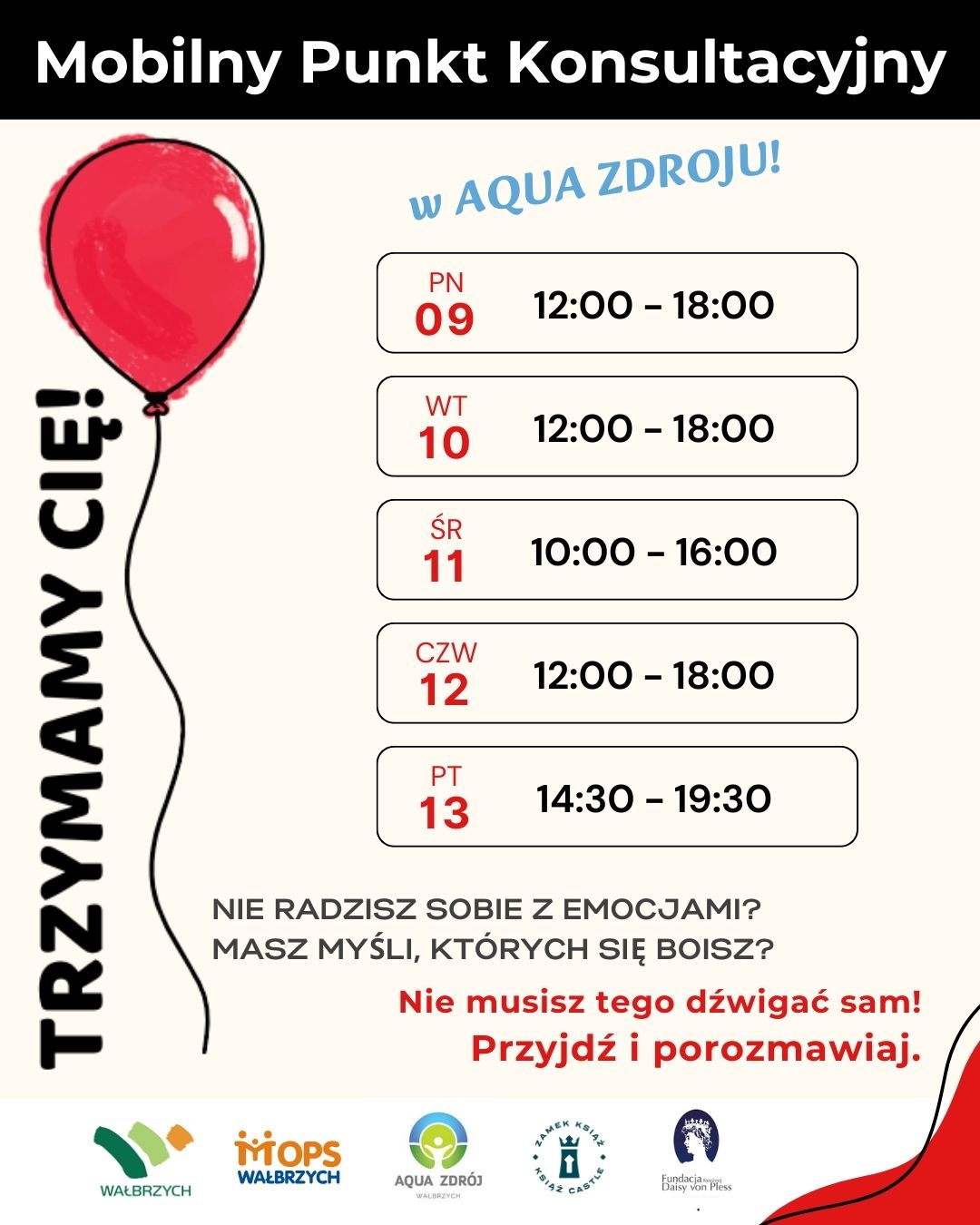 Mobilny Punkt Konsultacyjny jest elementem kampanii społecznej „Trzymamy Cię!”, dofinansowanej ze środków Fundacji Księżnej Daisy von Pless, której celem jest wsparcie dzieci i młodzieży w kryzysie psychicznym.