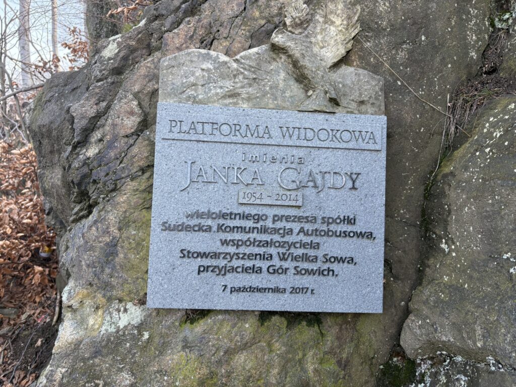 Taras widokowy na Kocim Grzbiecie powstał w 2011 roku z inicjatywy Stowarzyszenia Wielka Sowa. W 2017 roku nadano mu imię Jana Gajdy, o którym informacje znajdziemy na zamieszczonej na skale przy tarasie pamiątkowej tabliczce. Był on współzałożycielem Stowarzyszenia Wielka Sowa i miłośnikiem Gór Sowich.