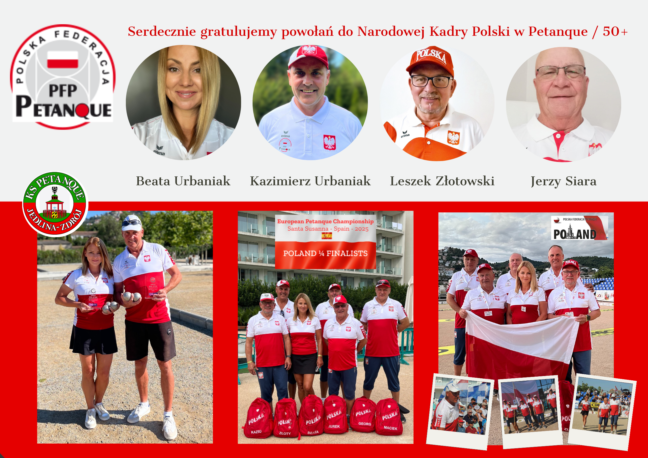 W Sezonie 2026 czworo zawodników KSP Jedlina otrzymało powołania do Narodowej Kadry Polski w Petanque: Beata Urbaniak, Kazimierz Urbaniak, Leszek Złotowski i Jerzy Siara.