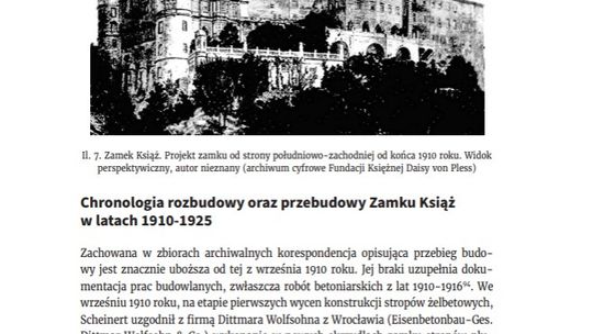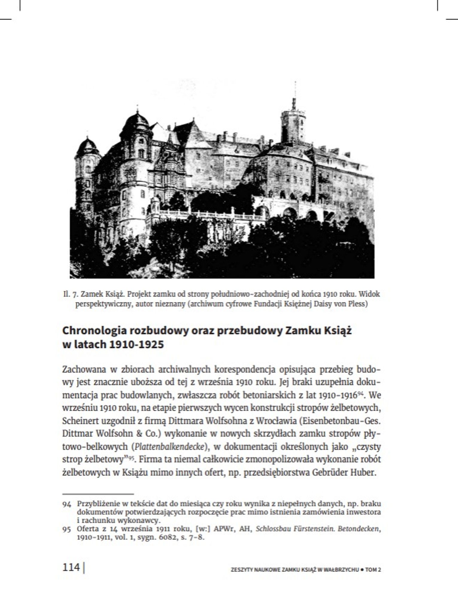 W tomie pod redakcja Mateusza Mykytyszyna i Katarzyny Sielickiej znalazły się artykuły autorstwa Agnieszki Trzos, Justyny Jaworek-Jakubskiej i Roberta Sobolewskiego, Agnieszki Gryglewskiej, Grzegorza Grajewskiego, Danuty Drabik-Wójtowicz i Ryszarda Wójtowicza, Krzysztofa Jaworskiego, Sylwii Rodak, Ewy Lisowskiej i Aleksandry Pankiewicz, Artura Boguszewicza oraz Wioletty Wrony-Gaj. Poruszają one m.in. temat krypty grobowej Hochbergów w kościele św. Mikołaja w Świebodzicach, historii i stanu zachowania krajobrazu kulturowego wokół Zamku Książ, rozbudowy i przekształceń architektonicznych obiektu na początku XX wieku, historii i konserwacji wystroju Salonu Włoskiego, wczesnośredniowiecznych początków Starego Książa, wyników badań archeologicznych w obrębie folwarku oraz zagadnień stylistycznych XX-wiecznej przebudowy zamku.