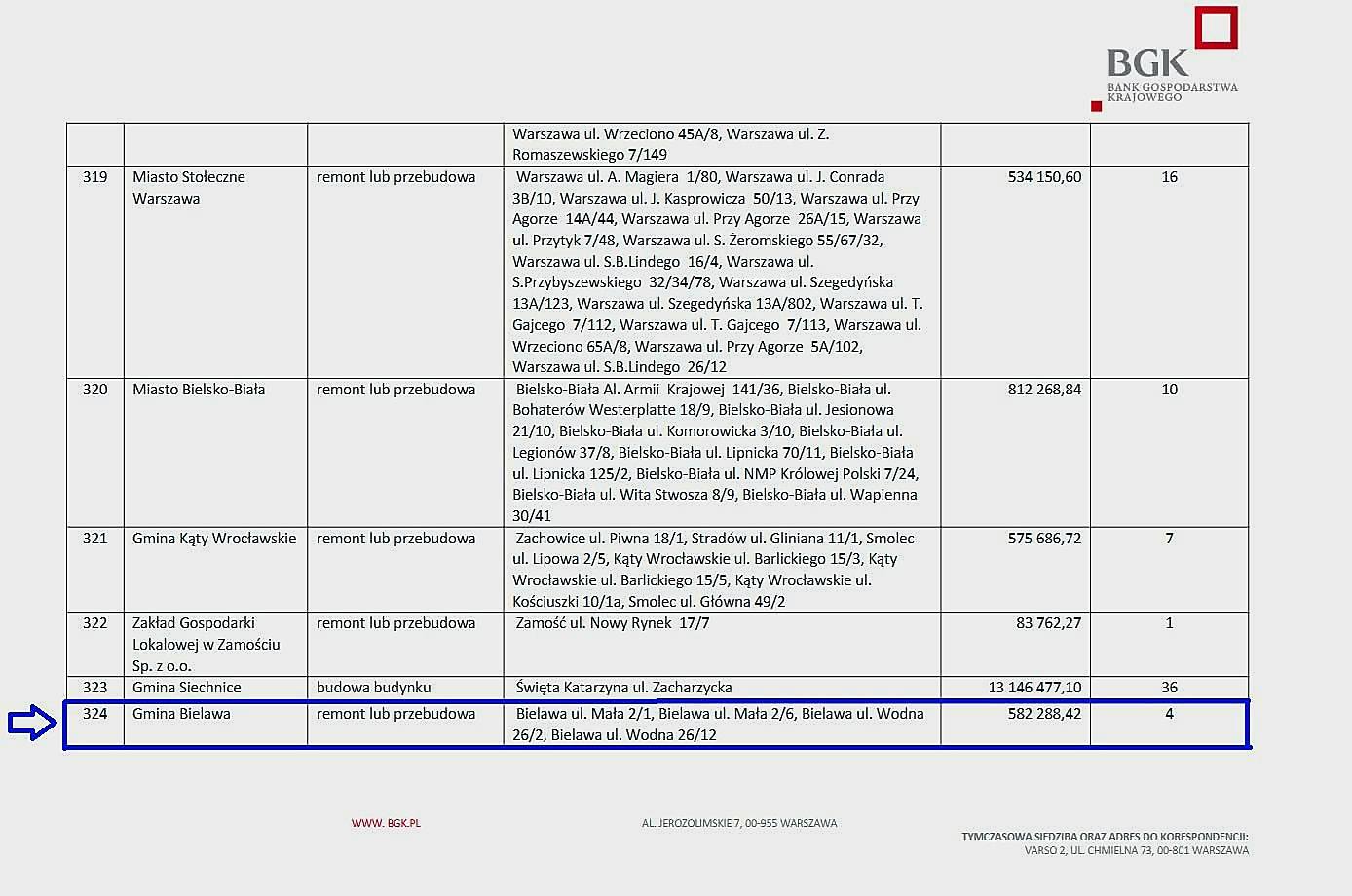Okazało się, że wniosek Gminy Bielawa o dofinansowanie modernizacji zasobu mieszkaniowego, został oceniony pozytywnie i wybrany do dofinansowania kwotą 582.288,42 zł. Środki BGK stanowić będą aż 80 % wartości zadania, oszacowanego na 727.860,53 zł.