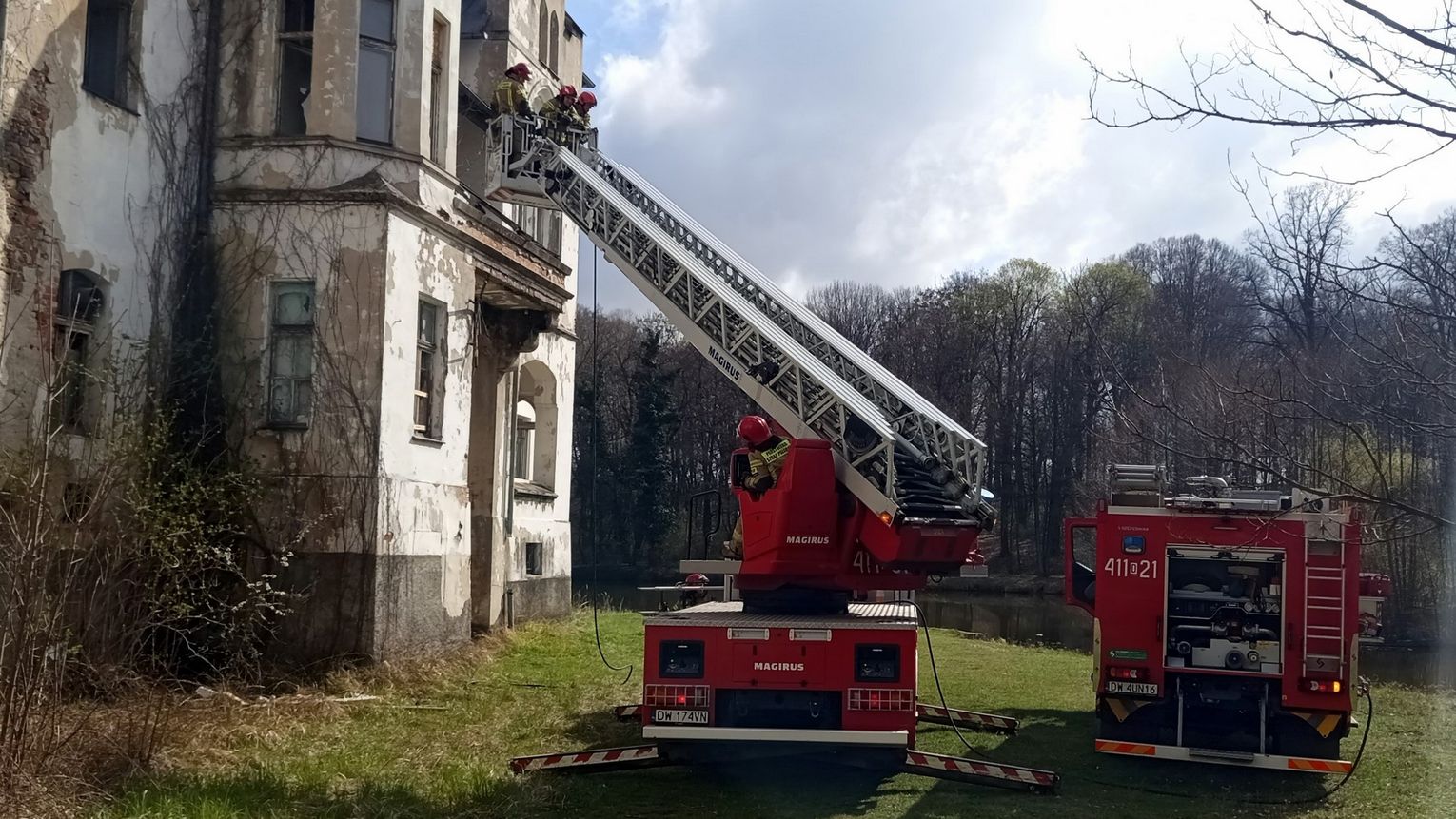1 kwietnia po godzinie 10:20 dyżurny stanowiska kierowania PSP w Dzierżoniowie otrzymał zgłoszenie o wydobywającym się dymie z pałacu w Dobrocinie. Natychmiast zostały zadysponowane cztery zastępy straży. Na miejscu zgłoszenie się potwierdziło, dym wydobywał się z pomieszczenia na pierwszej kondygnacji. Po przystawieniu drabiny mechanicznej strażacy dostali się do pomieszczenia w którym paliła się podłoga. Spaleniu uległo około 4 metry podłogi. Na miejscu pracowała policja, oraz przybył przedstawiciel właściciela obiektu.