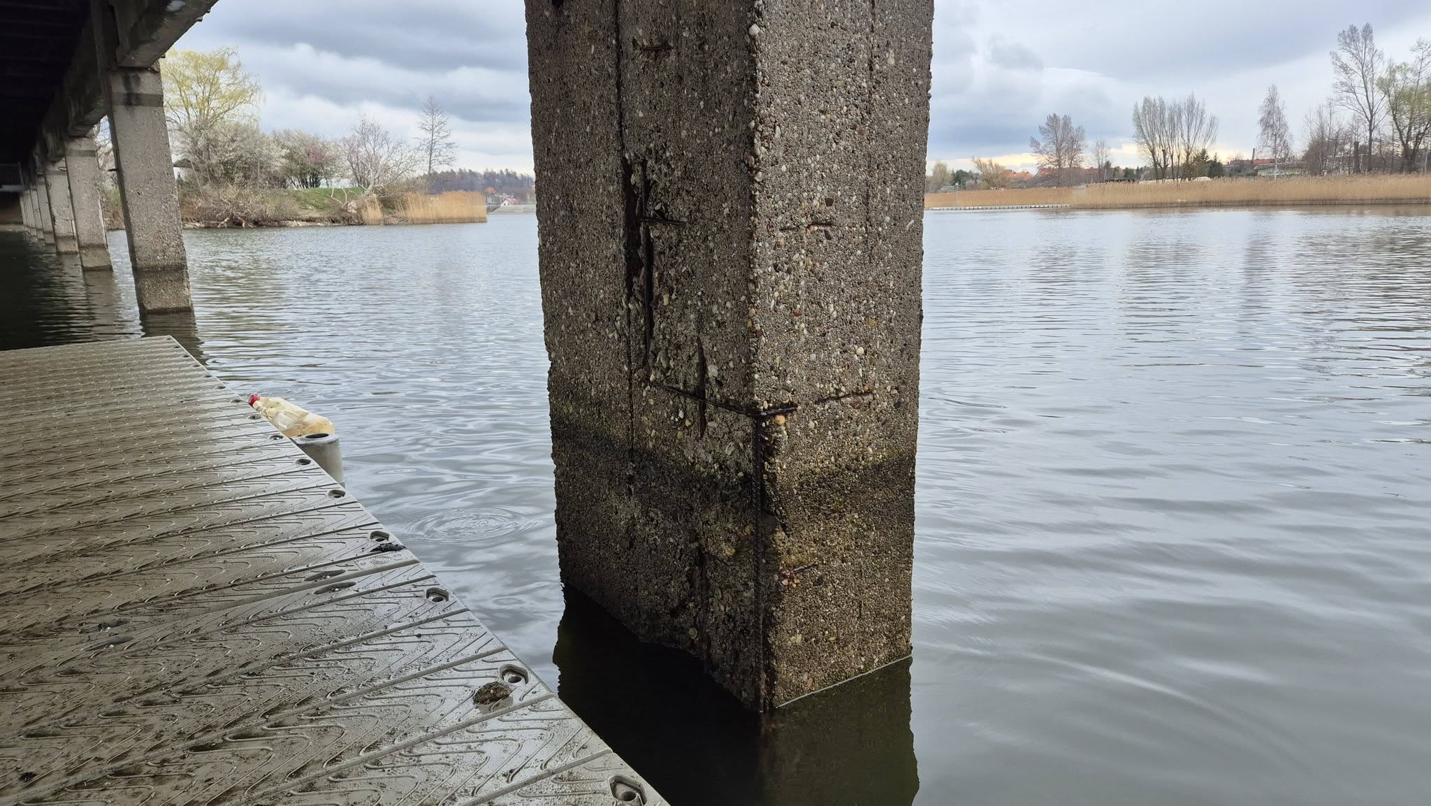 W trakcie przygotowań do kompleksowej modernizacji pomostu, za pomocą podwodnego drona, wykonana została inwentaryzacja elementów betonowych filarów pomostu, znajdujących się poniżej lustra wody. Wyniknęło z niej, że konstrukcja jest stabilna, jednak wymaga specjalistycznej interwencji technicznej na wysokości lustra wody, która zabezpieczyłaby filary pomostu przed dalszą erozją. Jest ona szczególnie dotkliwa w okresie zimowym, kiedy to temperatura wody akwenu bardzo często przechodzi przez 0 st. C, powodując pogłębiania się uszkodzeń w porowatej i zniszczonej powierzchni podpór pomostu.