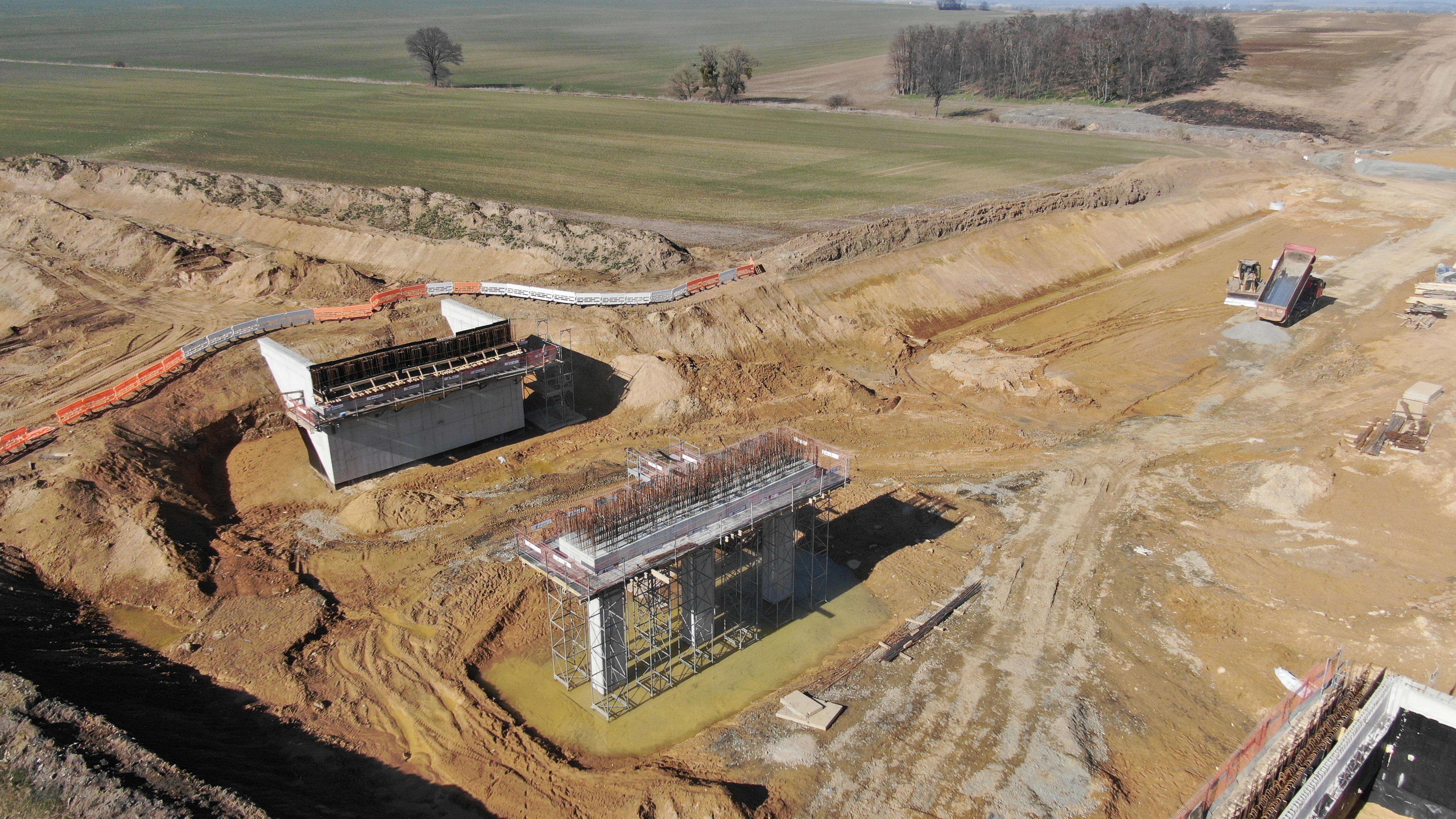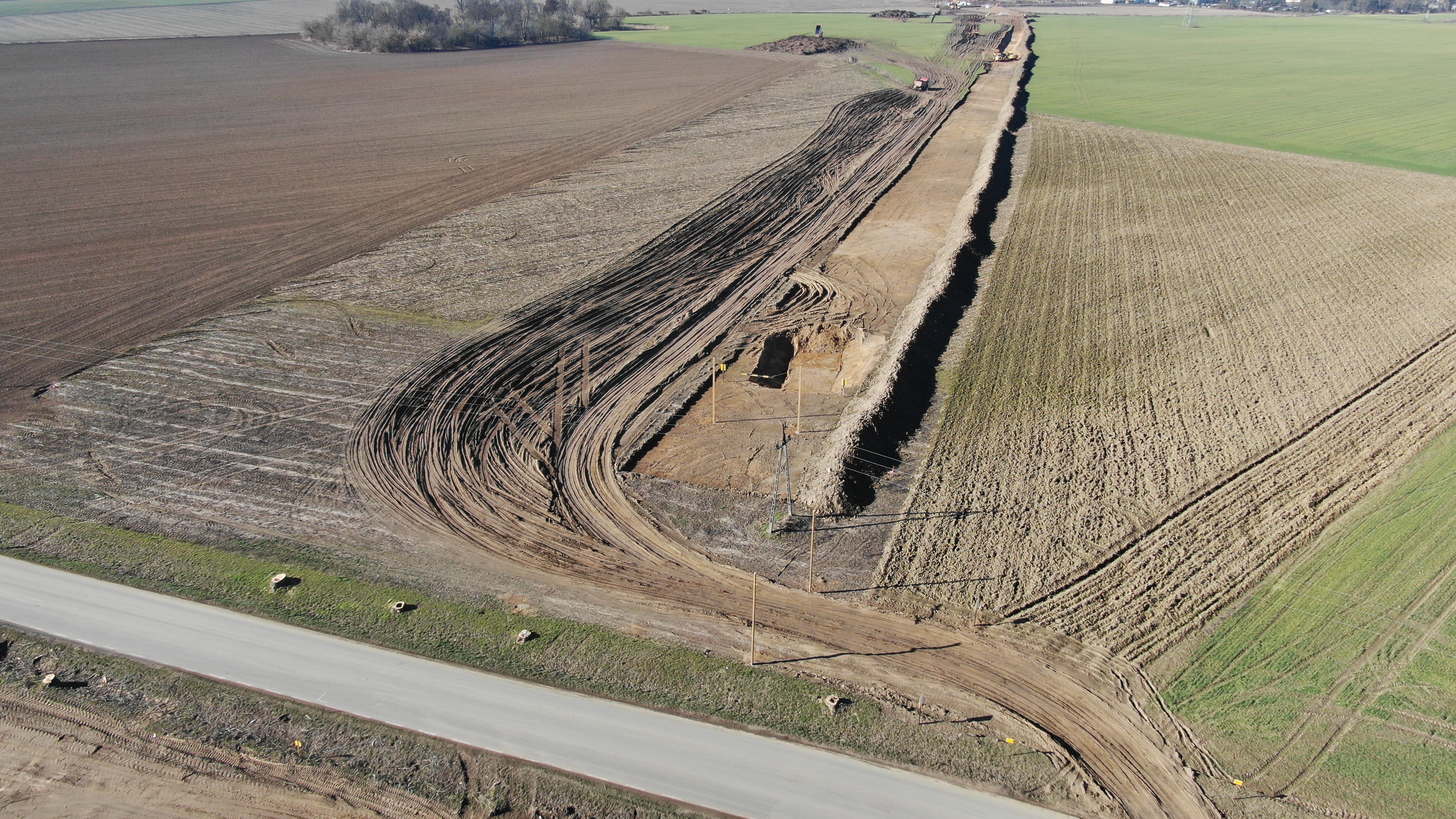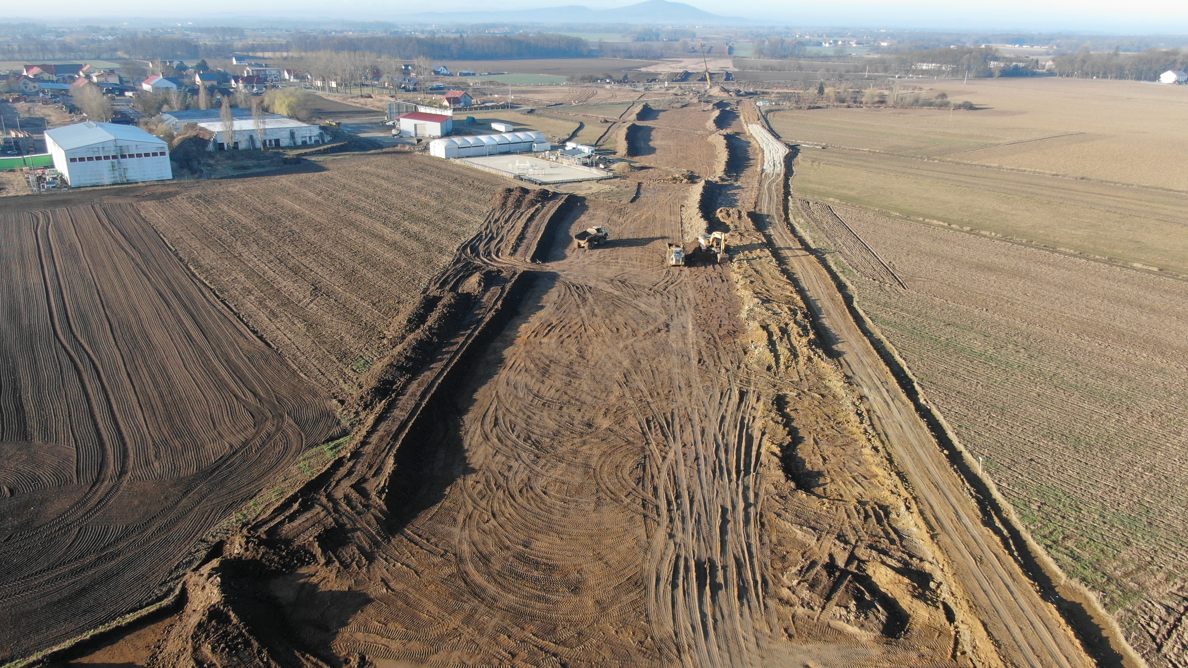 Na odcinku najbliżej Wrocławia wykonawca zbudował już drogi dojazdowe oraz przygotował platformy robocze dla ciężkiego sprzętu. Położył warstwy wyrównawcze pod przyszłe fundamenty wiaduktów, wymienił grunt pod drogi, m.in. pod drogę gminną w Królikowicach, oraz wykonał osnowę geodezyjną. Łagodniejsza część zimy pozwoliła także na wykonanie wykopów pod fundamenty wiaduktów oraz na palowanie, czyli wzmocnienie i stabilizację podłoża, a następnie przeprowadzenie prób obciążeniowych. Zimą prowadzono również prace związane z przebudową kanalizacji sanitarnej. Nadal trwa usuwanie warstwy humusu z terenu trasy. W najbliższych tygodniach wykonawca będzie usuwał pozostałości po wycince drzew oraz prowadził roboty związane z posadowieniem obiektów inżynierskich.