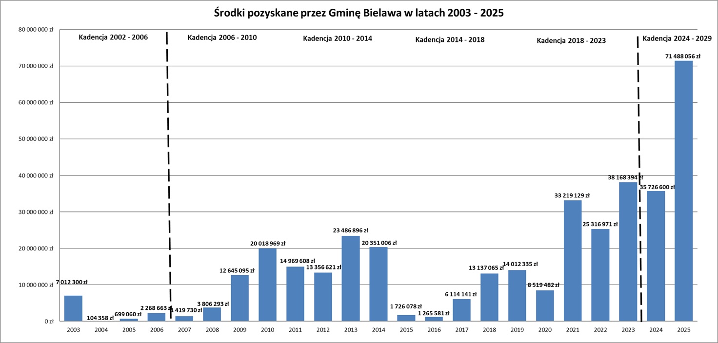 Wyżej wymienione wnioski dotyczyły aż 19 przedsięwzięć inwestycyjnych, zrealizowanych w latach 2020 - 2024, w których oprócz środków zewnętrznych zaangażowane były także środki własne, pochodzące z emisji obligacji.