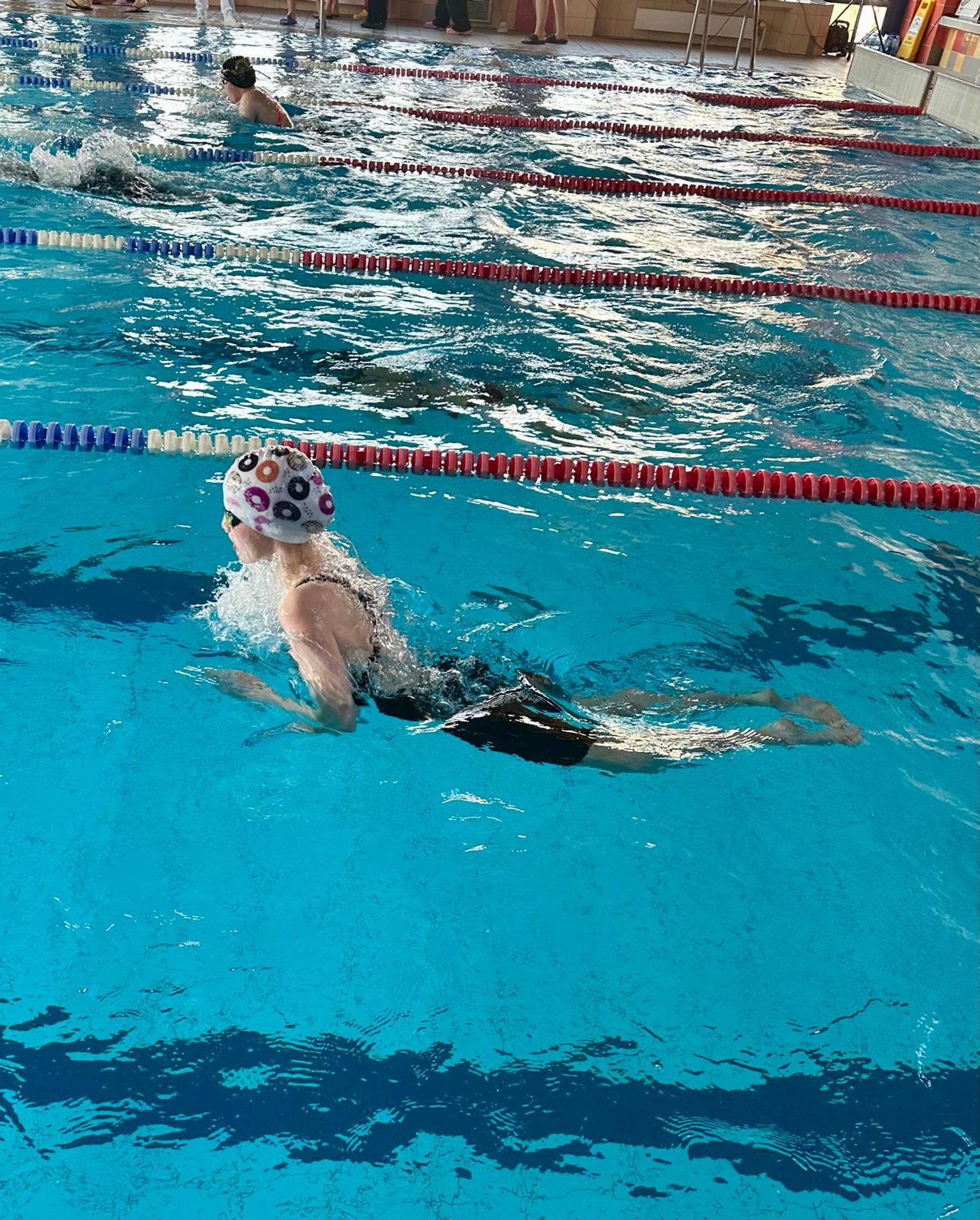 1 miejsce, 50m stylem grzbietowym, czas 32.25s