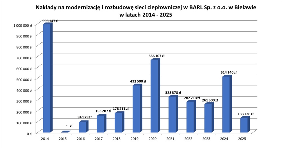 radykalnie zwiększono nakłady na rozbudowę sieci ciepłowniczej, dzięki czemu pozyskano nowych, dużych odbiorców energii cieplnej (m.in. budynki wielorodzinne os. Zielone Wzgórza, TBS i prywatnego developera, budynek Zespołu Szkół Ponadpodstawowych przy ul. S. Żeromskiego, 2 budynki Urzędu Miejskiego)
