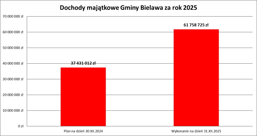 dochody majątkowe 61.758.725 zł (plan pierwotny: 37.431.012 zł)