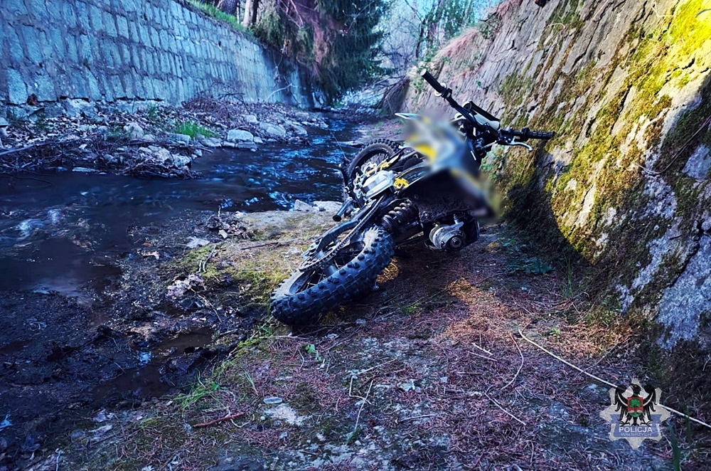 Policjanci ruchu drogowego wałbrzyskiej komendy otrzymali informację o kolizji drogowej przy ul. Strumykowej w Dziećmorowicach. Kierująca pojazdem, poza drogą publiczną, miała wjechać jednośladem wprost do pobliskiej rzeki.