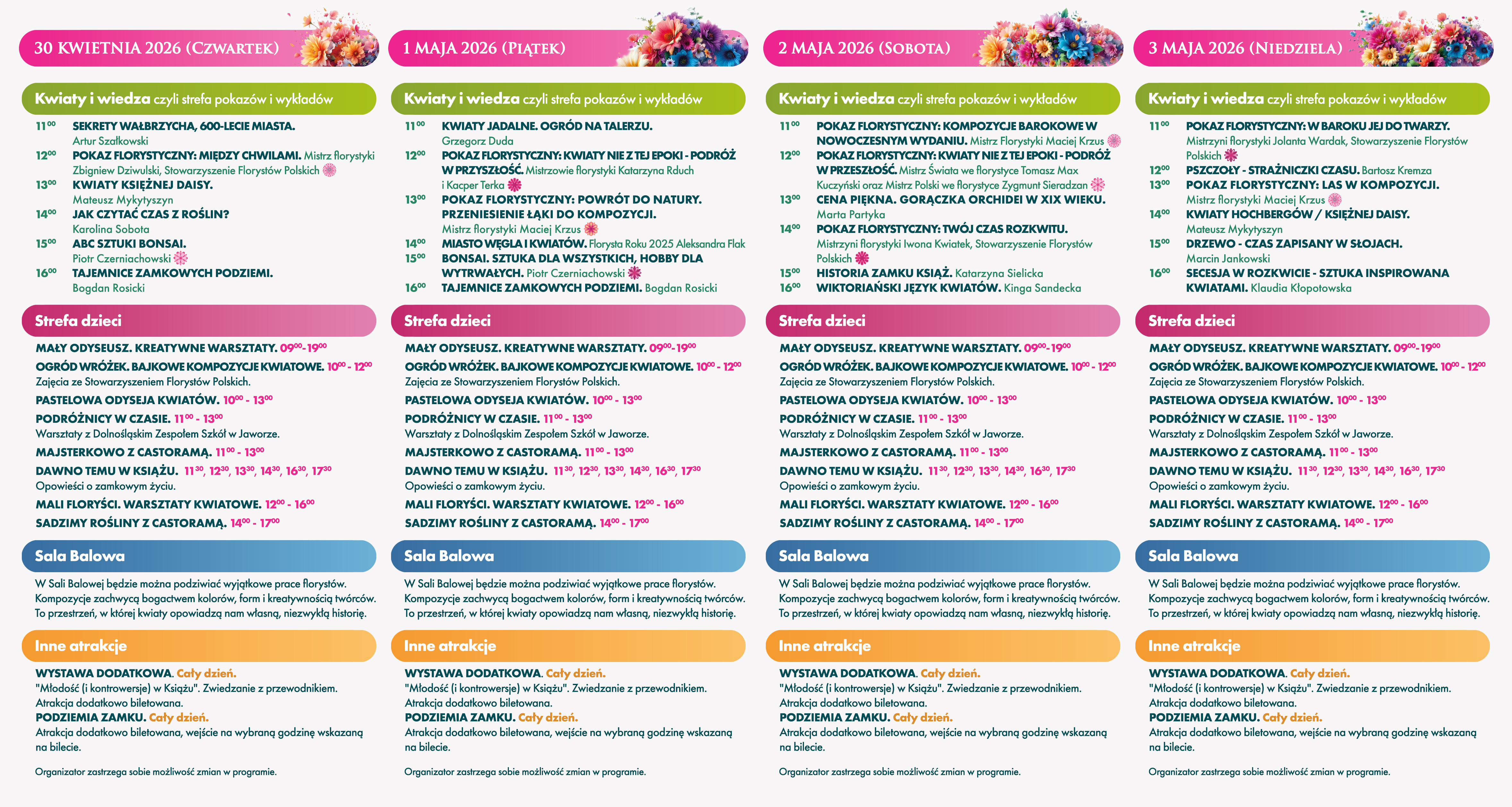 W programie (codziennie, od 30.04 do 03.05):