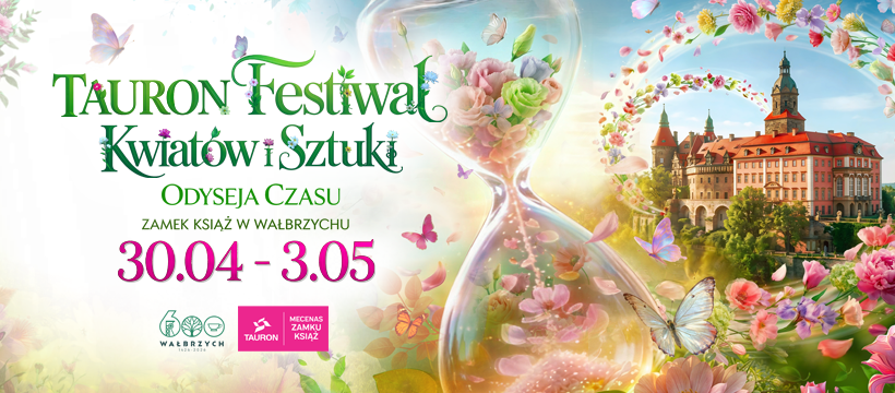 TAURON Festiwal Kwiatów i Sztuki 2026 „Odyseja Czasu” to zdecydowanie najbarwniejsze i najbardziej widowiskowe wydarzenie w Zamku Książ. Już po raz XXXVI kompleks zamieni się w prawdziwe królestwo kwiatów, a do zamku prowadzić będzie zachwycający kwietny dywan! Podczas tegorocznej edycji festiwalu odwiedzający będą mogli podziwiać spektakularne aranżacje florystyczne przygotowane przez wyjątkowe zespoły: Stowarzyszenie Florystów Polskich, Międzynarodowy Instytut Florystyczny, Mistrzowską Szkołę Florystyczną Macieja Krzusa oraz Dolnośląski Zespół Szkół w Jaworze