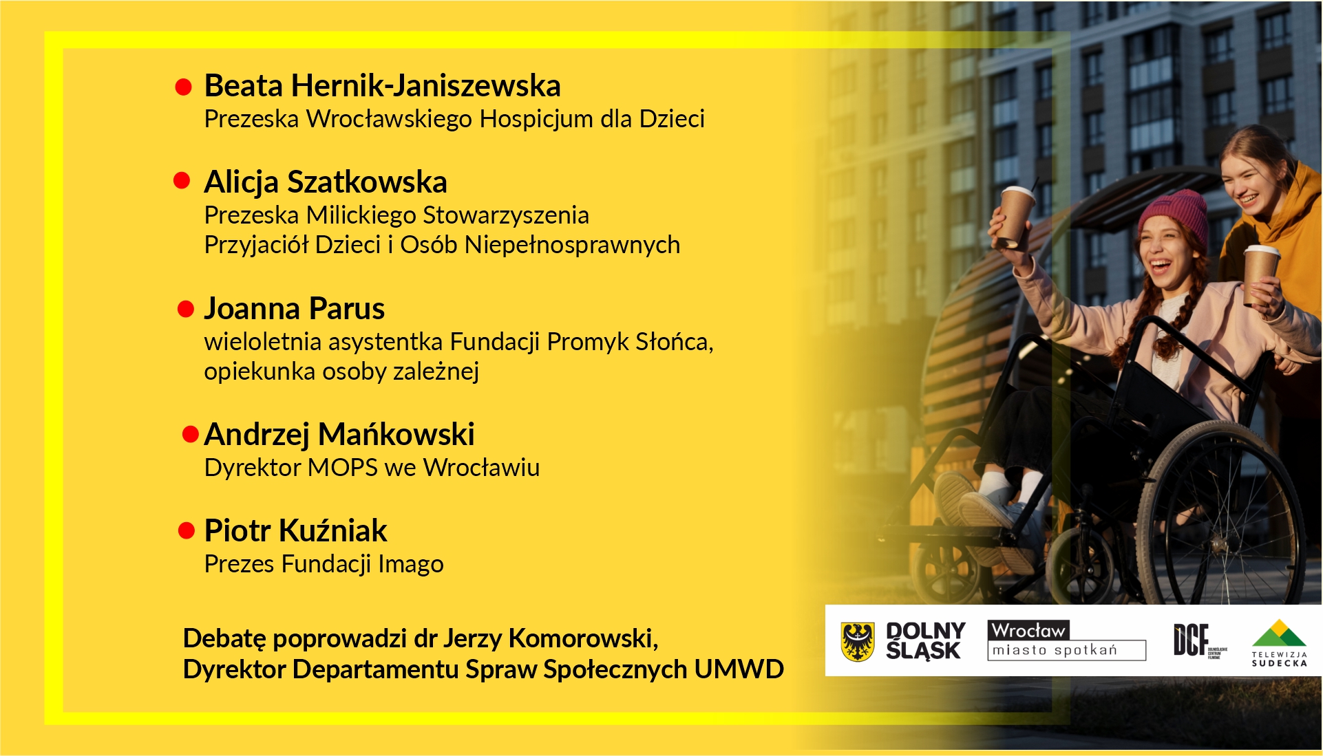 Moderatorem debaty będzie dr Jerzy Komorowski, dyrektor Departamentu Spraw Społecznych i Rynku Pracy UMWD, a wezmą w niej udział: