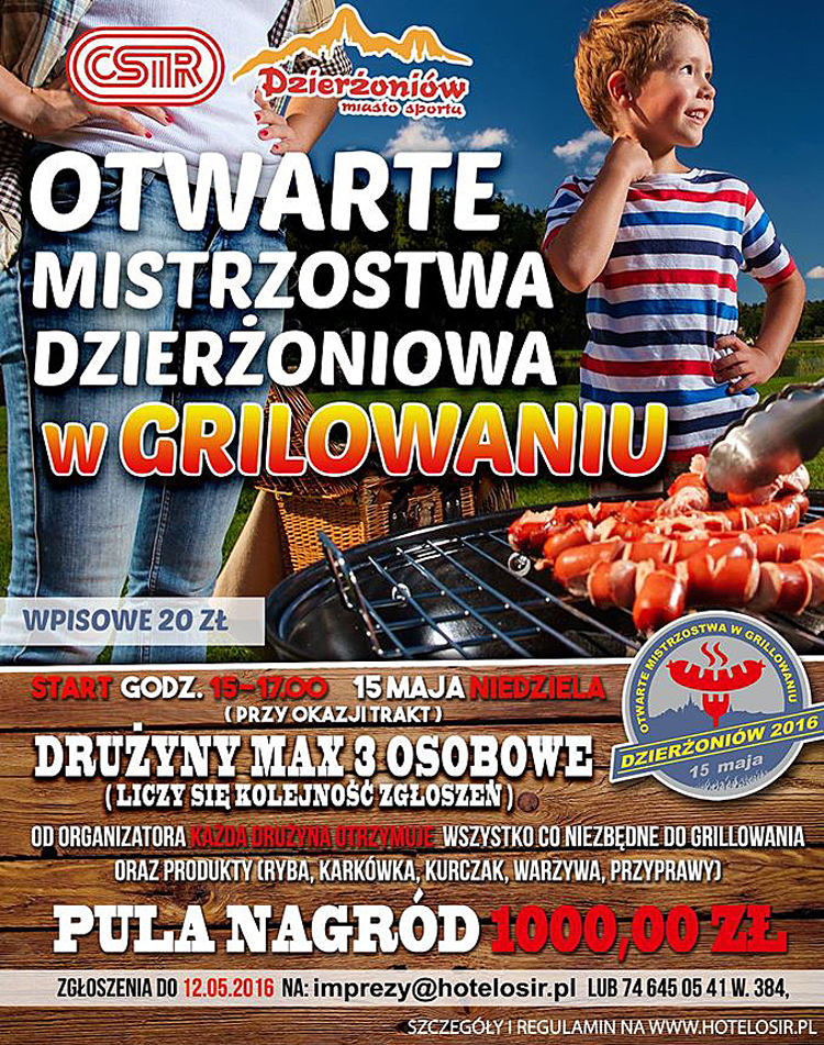 Do udziału w imprezie zapraszamy drużyny maksymalnie 3-osobowe, które przyrządzą karkówkę, kurczaka i rybę. Jury oceni smak i wygląd potraw, sposób ich serwowania, dekorację potraw i stoiska, a także ubiór drużyny. Organizator dostarcza produkty do grillowania oraz dodatki i przyprawy, a także zapewnia stanowisko z grillem oraz węgiel i podpałkę. Najlepsze drużyny otrzymają atrakcyjne nagrody o łącznej wartości 1000 zł.