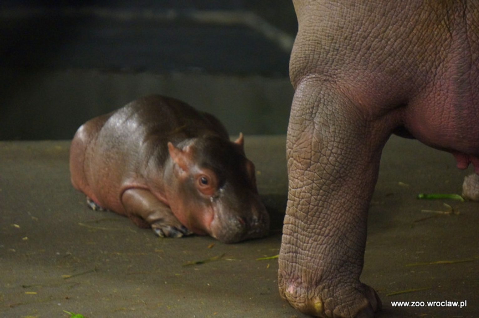 Poród był szybki, a młode i matka czują się dobrze. Maluch, po pierwszych 36 godzinach w wodzie, stawia pierwsze, niepewne kroki na zapleczu pod czujnym okiem matki. Z daleka obserwuje oboje dumny ojciec – Valecek, który przyjechał do wrocławskiego zoo z Pragi, niespełna 2 lata temu.