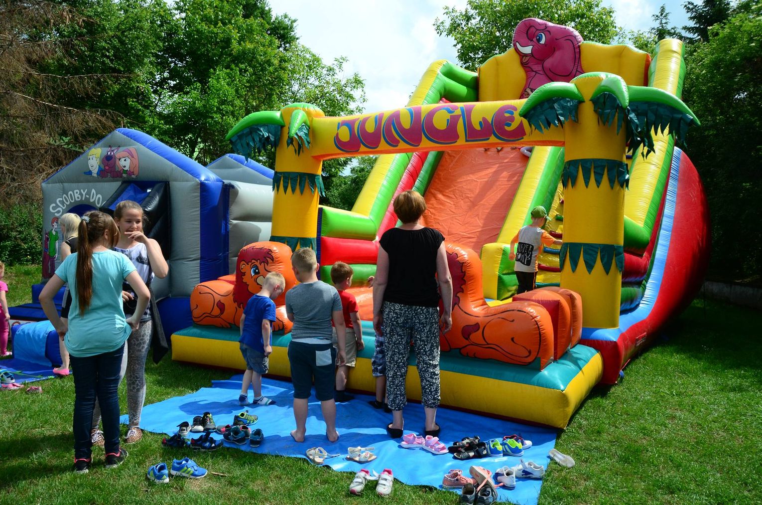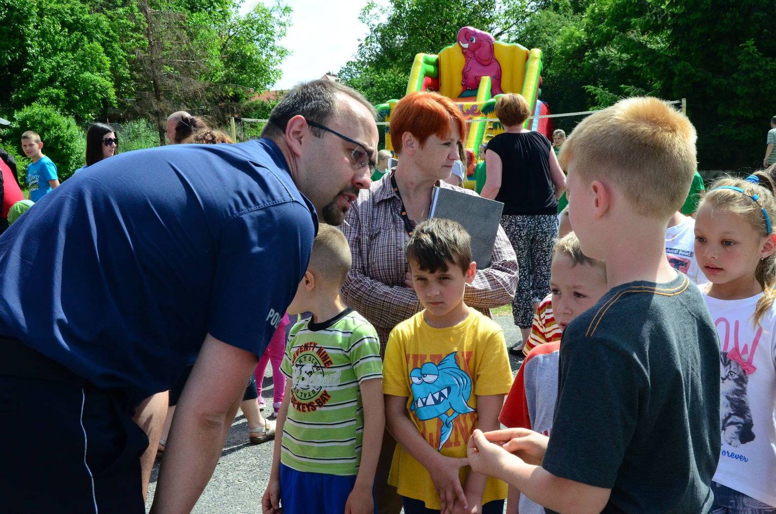 Wrażeń i zabawy dla najmłodszych nie zabrakło, bo rozstawione zostały dmuchane zamki – zjeżdżalnie, które były wręcz oblegane. Ponadto chętnym malowane były buzie w kotki lub inne zwierzątka. Były konkursy z wiedzy i sprawnościowe. Umilając czas gościom i dzieciom wystąpił szkolny zespół taneczny „13”. Wszyscy uczestnicy otrzymali elementy odblaskowe, kolorowanki oraz liczne gadżety promocyjne powiatu dzierżoniowskiego. W trakcie imprezy wypisywane były dla zainteresowanych karty ICE – w nagłym wypadku.