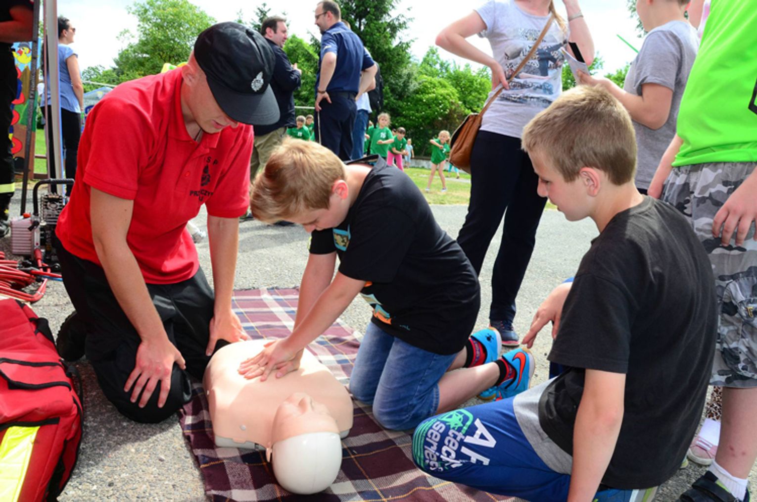 W trakcie imprezy dzieci mogły zapoznać się ze sprzętem strażaków, policjantów oraz ratowników medycznych wykorzystywanym podczas akcji. Utrwaliły sobie wiedzę na temat numerów alarmowych oraz właściwego sposobu zgłaszania zdarzeń do dyspozytorów poszczególnych służb, a także uczyły się na fantomie udzielania pierwszej pomocy przedmedycznej. Najmłodsi kolorowali znaki drogowe ucząc się jednocześnie ich znaczenia. Oczywiście, jak zawsze ogromną frajdę sprawiła możliwość wejścia do radiowozu, przymierzenia policyjnej czapki lub całego stroju strażackiego.