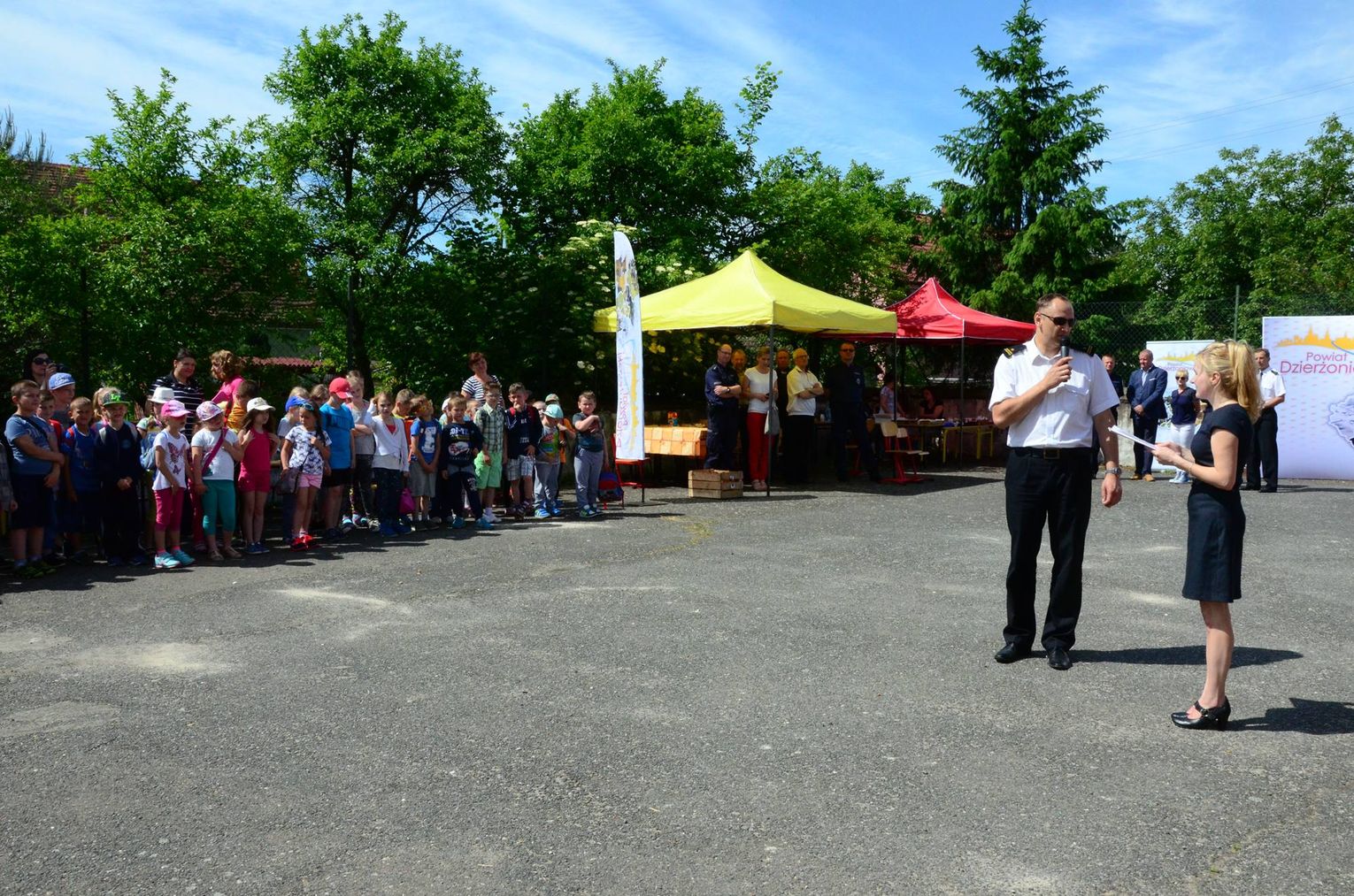 Powiatowy Dzień Bezpieczeństwa jest przedsięwzięciem edukacyjno – prewencyjnym z zakresu bezpieczeństwa organizowanym cyklicznie na terenie powiatu dzierżoniowskiego przez Wydział Bezpieczeństwa i Spraw Obywatelskich Starostwa Powiatowego w Dzierżoniowie, Komendę Powiatową Państwowej Straży Pożarnej w Dzierżoniowie, Komendę Powiatową Policji w Dzierżoniowie, Ochotniczą Straż Pożarną w Przerzeczynie Zdroju oraz gminny samorząd, na terenie którego odbywa się impreza. Tegoroczna impreza rozpoczęła się bardzo poważnie, bo od próbnego alarmu. Strażacy przygotowali zadymienie w szkole, a zadaniem nauczycieli i dzieci była sprawna ewakuacja.