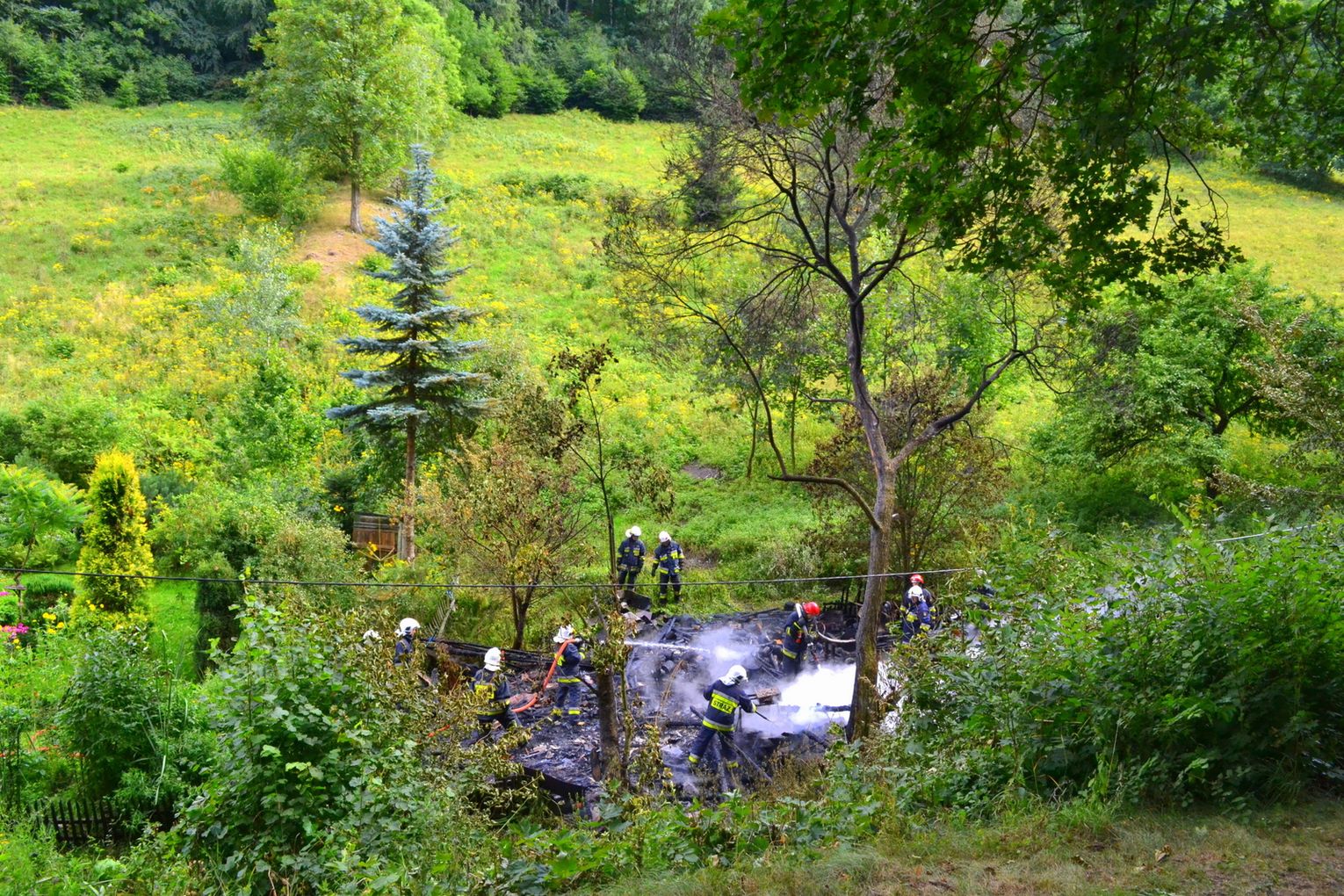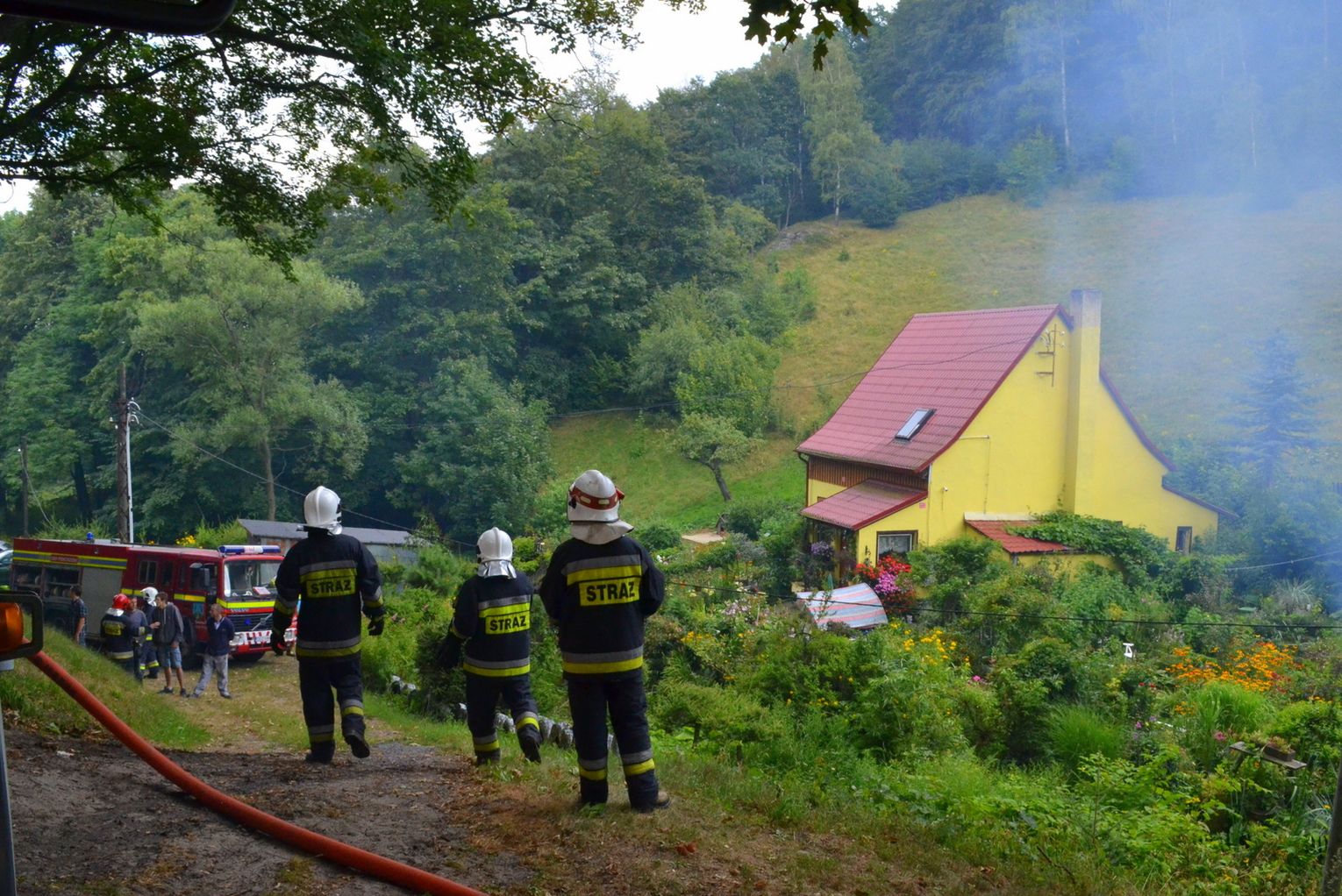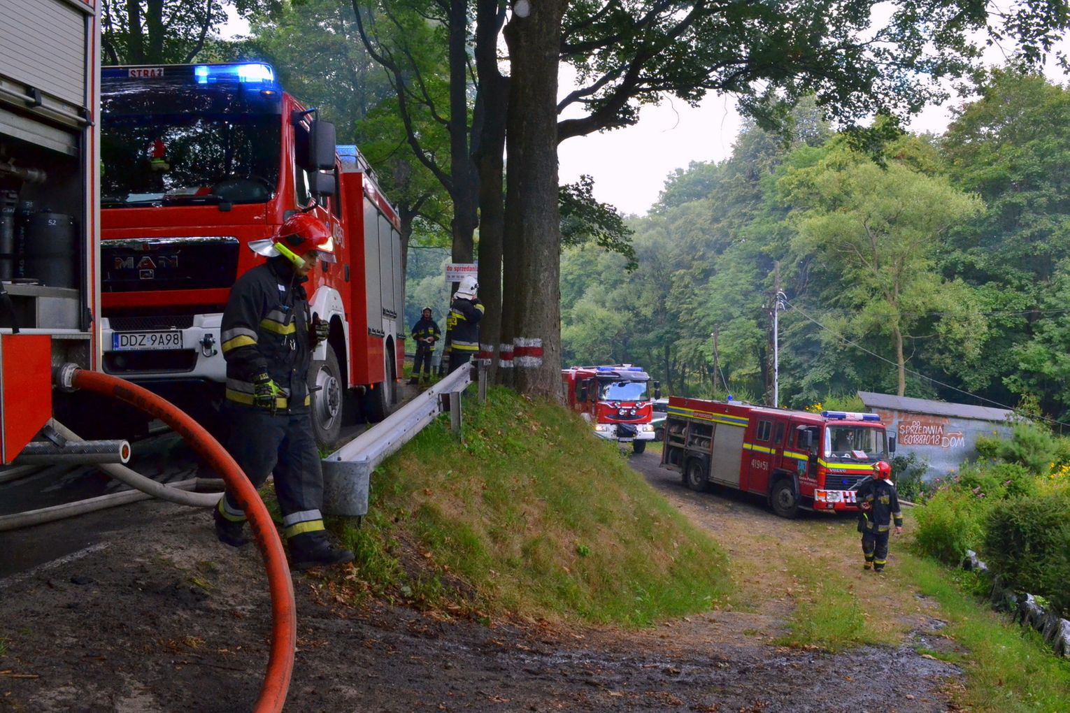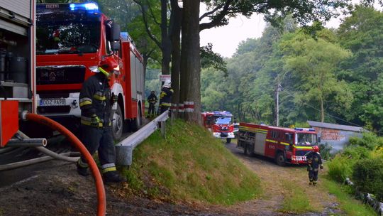 Budynek gospodarczy spłonął całkowicie a strażacy dogaszali pogorzelisko prądami wody. Na miejsce przybył również patrol policji. Ruch na drodze W-383 z Rościszowa do Walimia na wysokości miejsca pożaru odbywał się naprzemiennie.