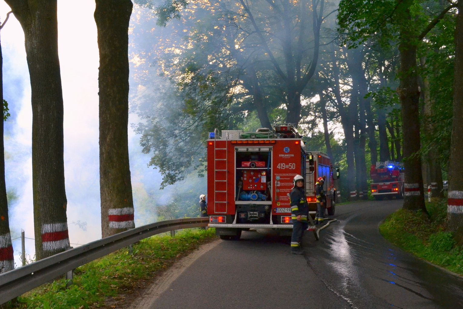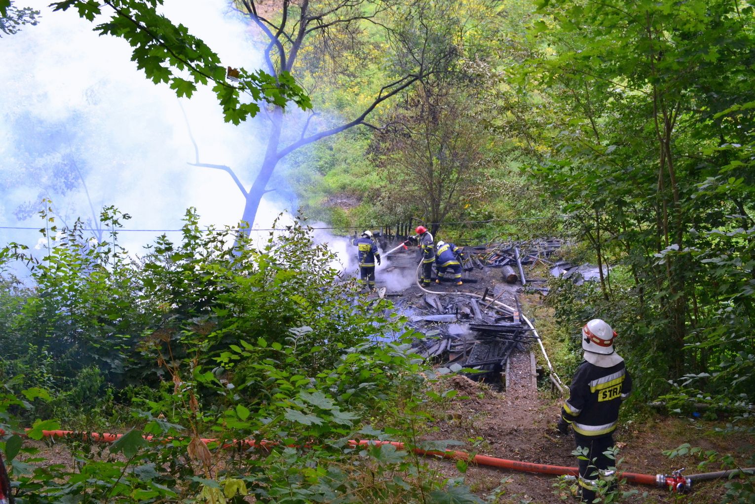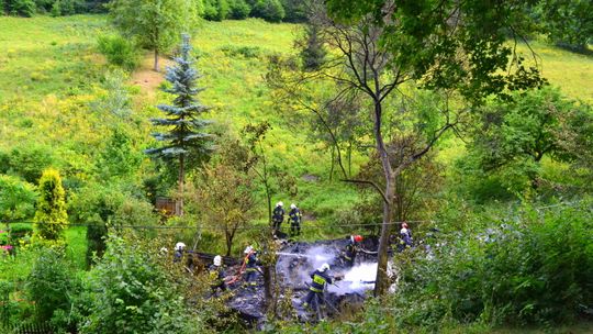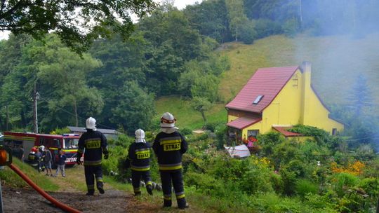 Budynek gospodarczy spłonął całkowicie a strażacy dogaszali pogorzelisko prądami wody. Na miejsce przybył również patrol policji. Ruch na drodze W-383 z Rościszowa do Walimia na wysokości miejsca pożaru odbywał się naprzemiennie.