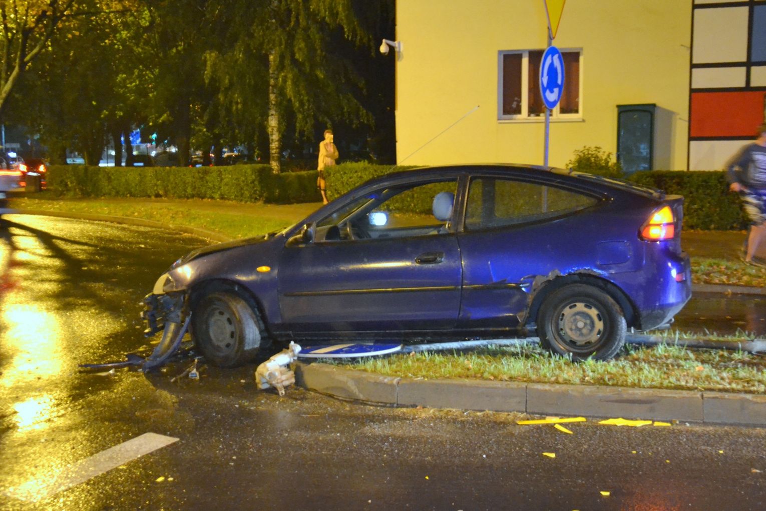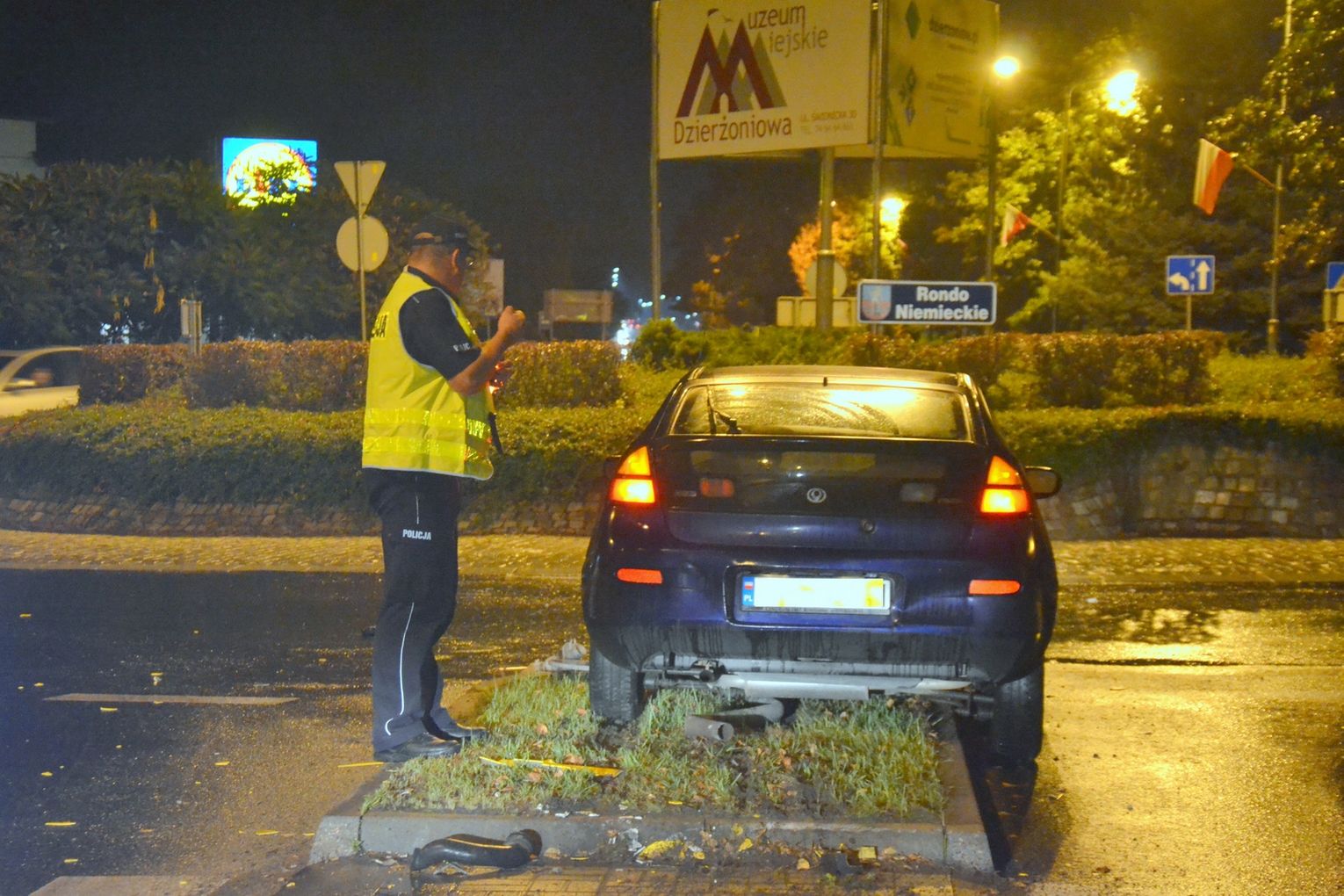 W sobotę 17 września w godzinach wieczornych w Dzierżoniowie przy Rondzie Niemieckim doszło do groźnego zdarzenia drogowego. Kierujący samochodem marki Mazdą wjechał rozpędzony na wysepkę przejścia dla pieszych. W wyniku zdarzenia zniszczeniu uległo oznakowanie pionowe przy przejściu oraz samochód sprawcy. Zdjęcia otrzymaliśmy od naszego widza, dziękujemy.