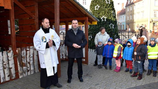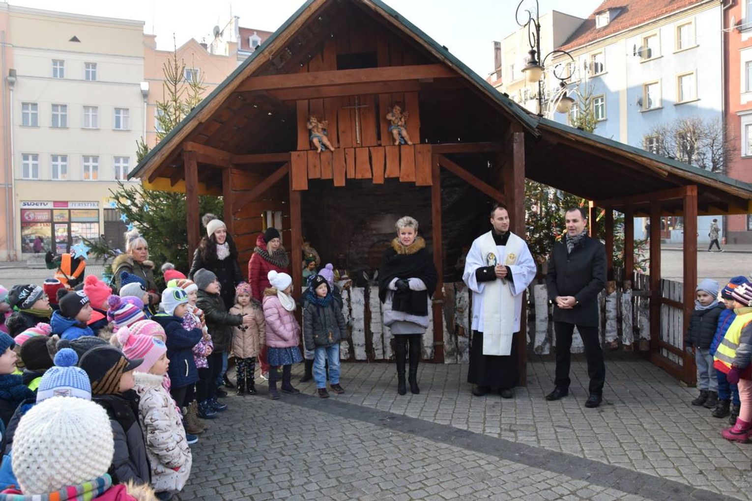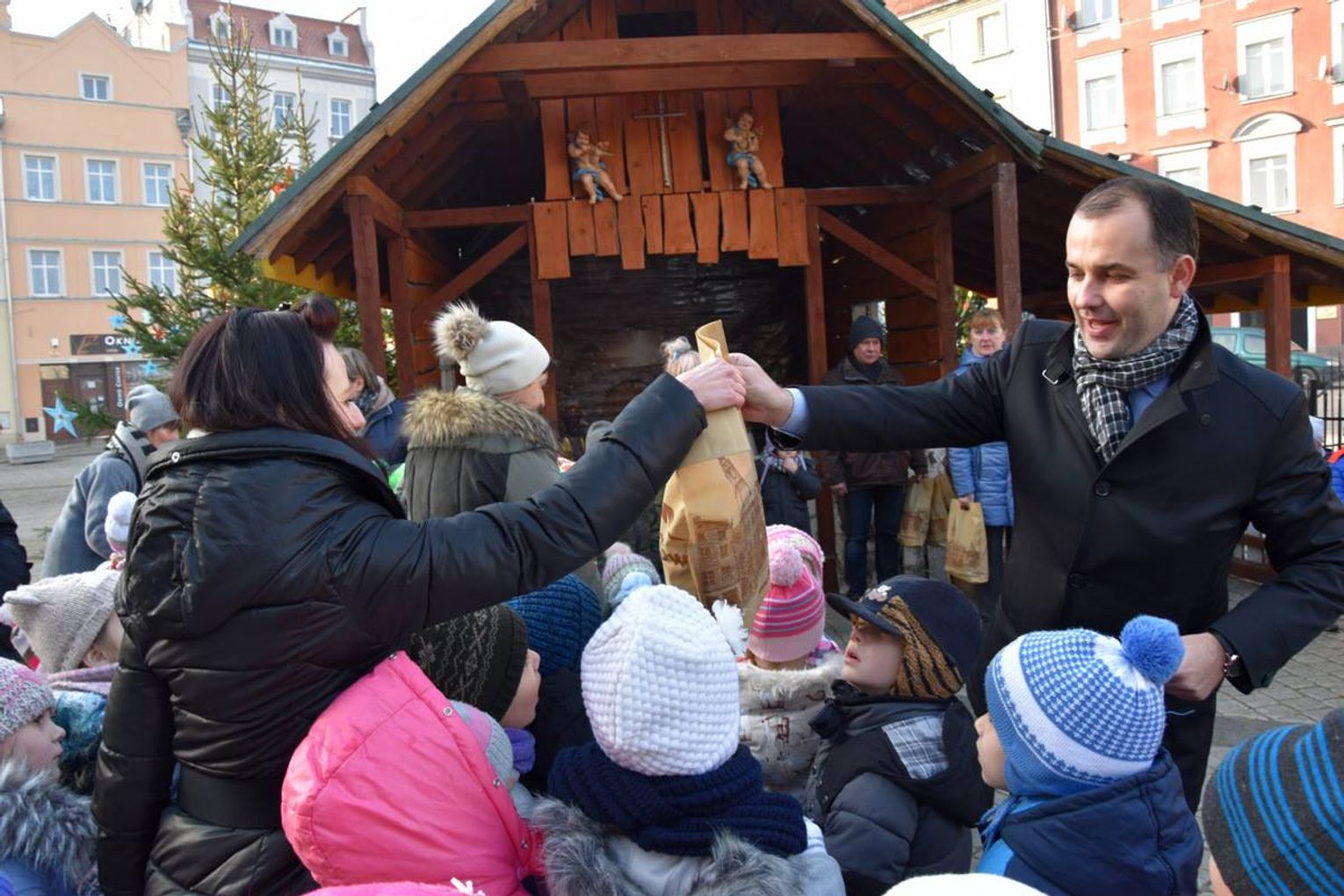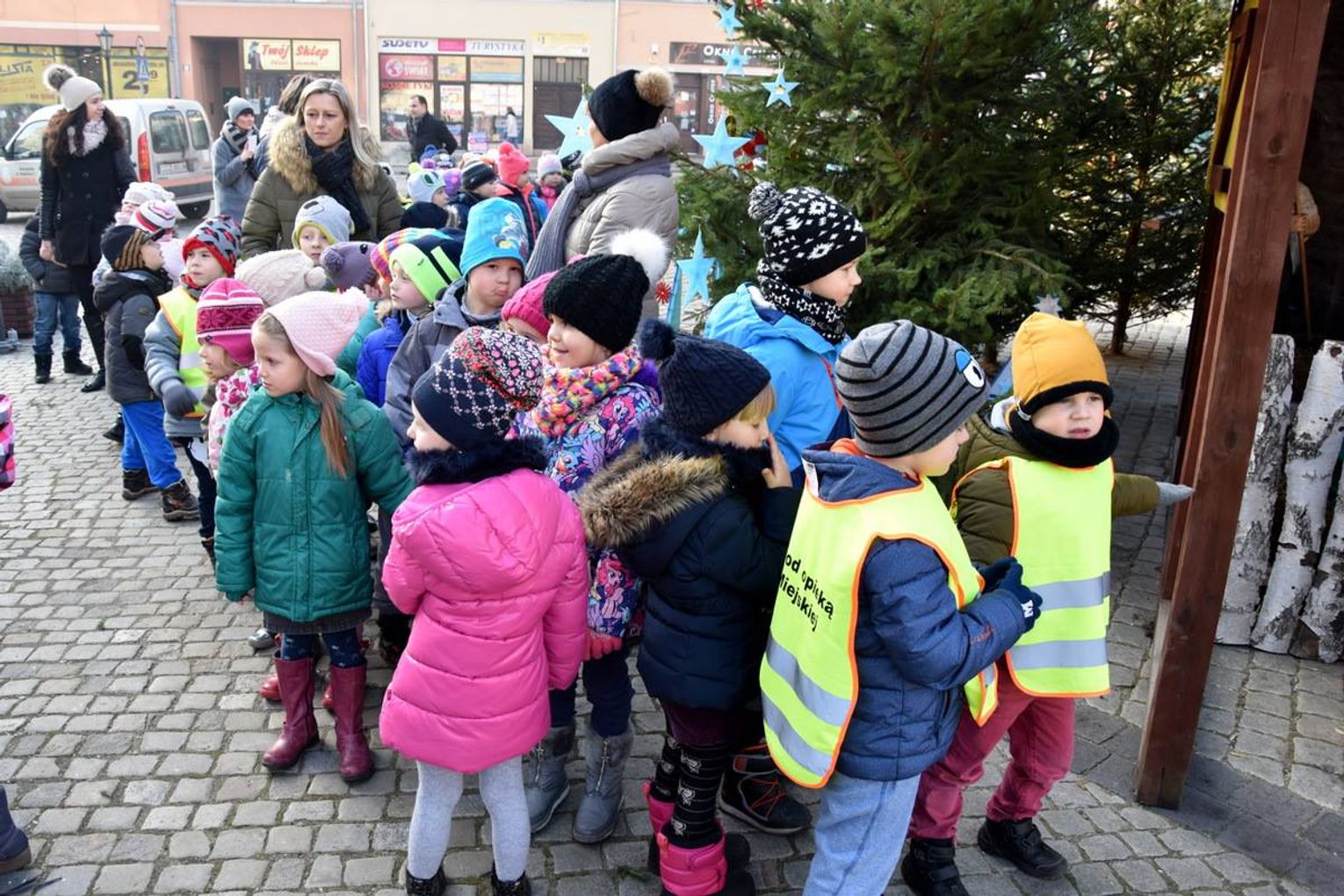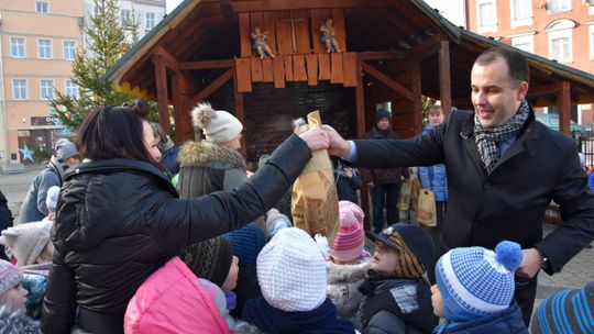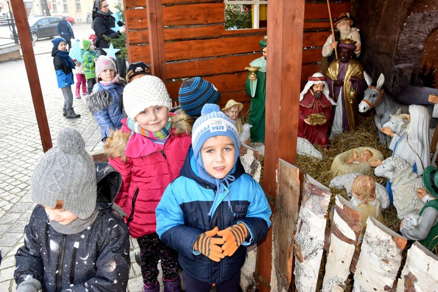 Za swój wysiłek przedszkolaki zostały nagrodzone torbami pełnymi słodkości. Otrzymały je po oficjalnym poświęceniu stojącej na rynku szopki, którego dokonał ks. Sebastian Oliszewski z parafii pw. św. Jerzego i po wspólnym odśpiewaniu kolędy. A nawet najmłodsze dzieci poradziły z tym sobie doskonale.