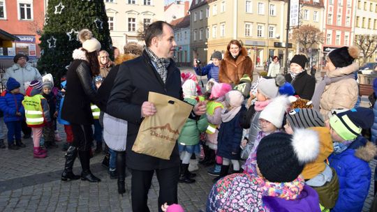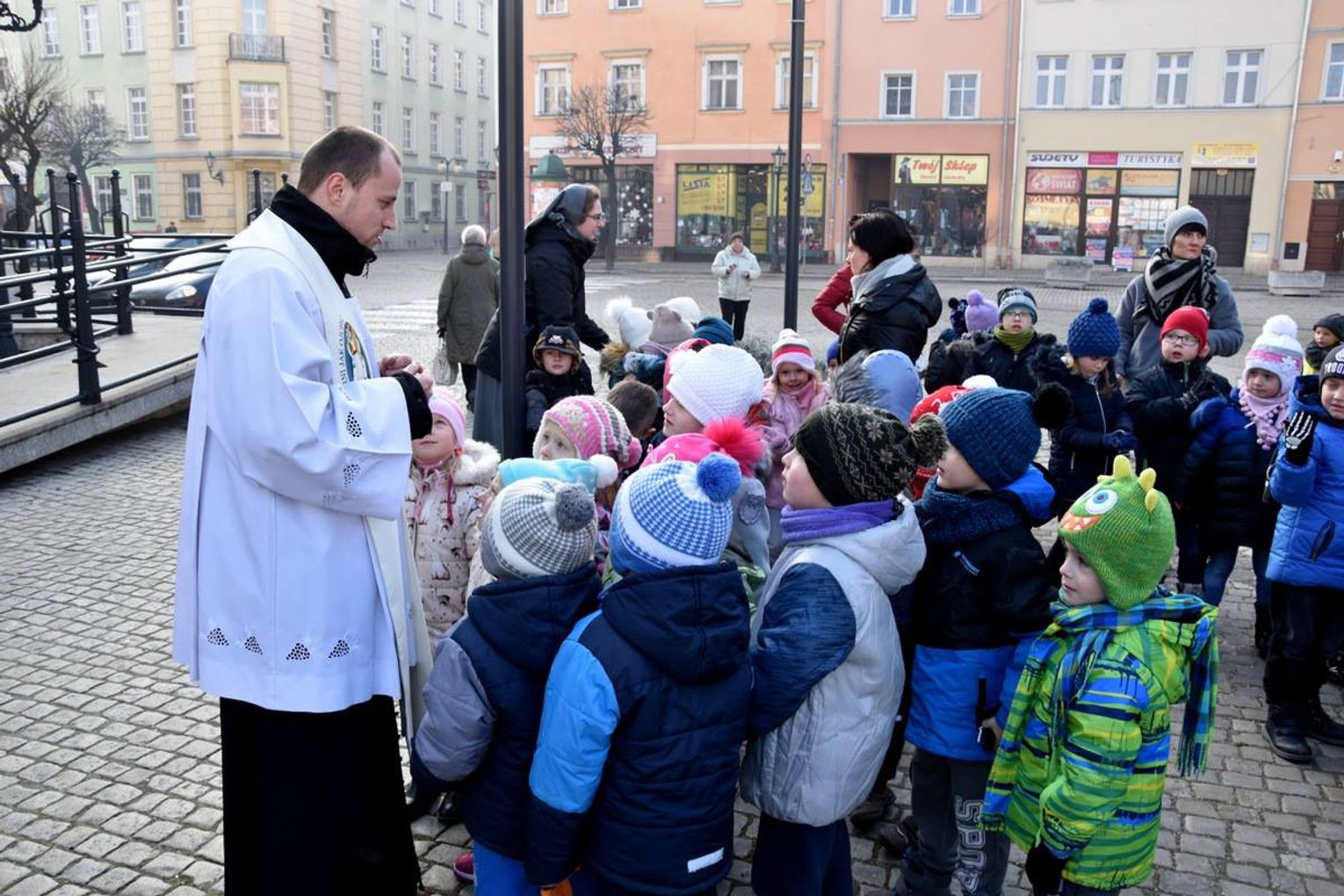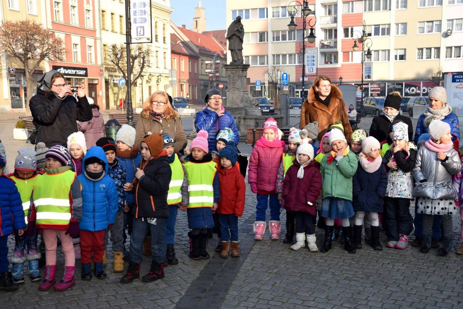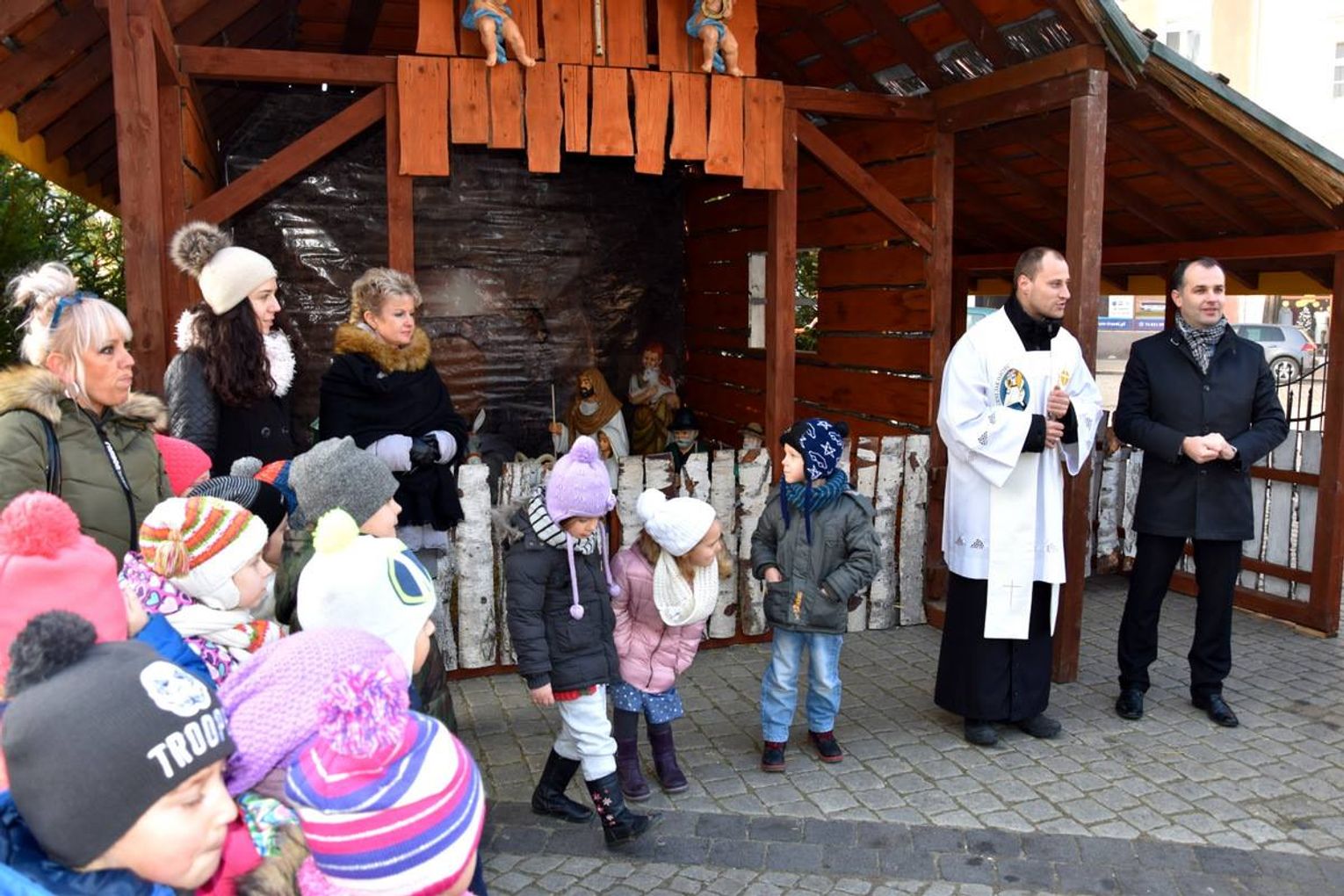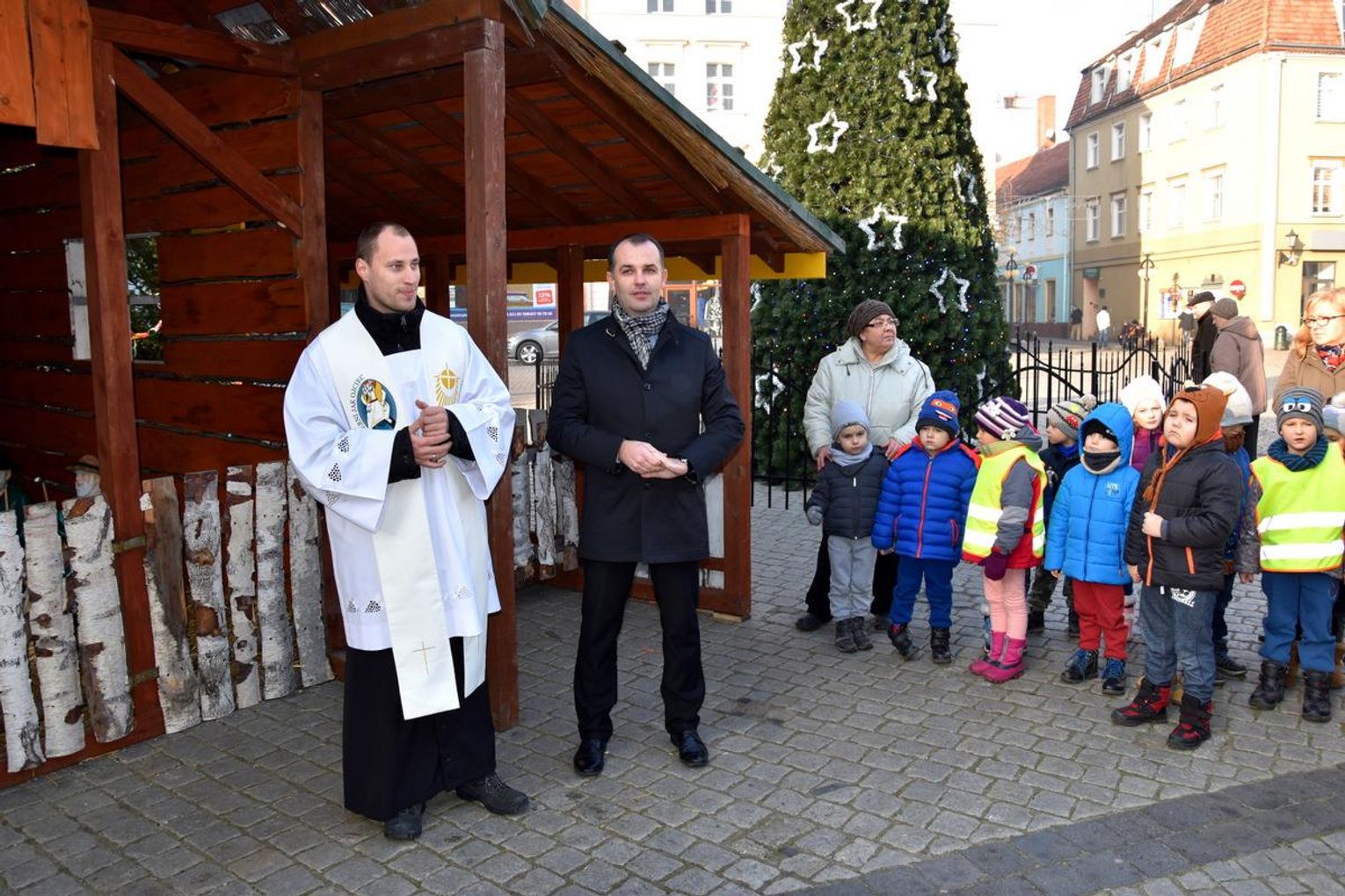 Za swój wysiłek przedszkolaki zostały nagrodzone torbami pełnymi słodkości. Otrzymały je po oficjalnym poświęceniu stojącej na rynku szopki, którego dokonał ks. Sebastian Oliszewski z parafii pw. św. Jerzego i po wspólnym odśpiewaniu kolędy. A nawet najmłodsze dzieci poradziły z tym sobie doskonale.