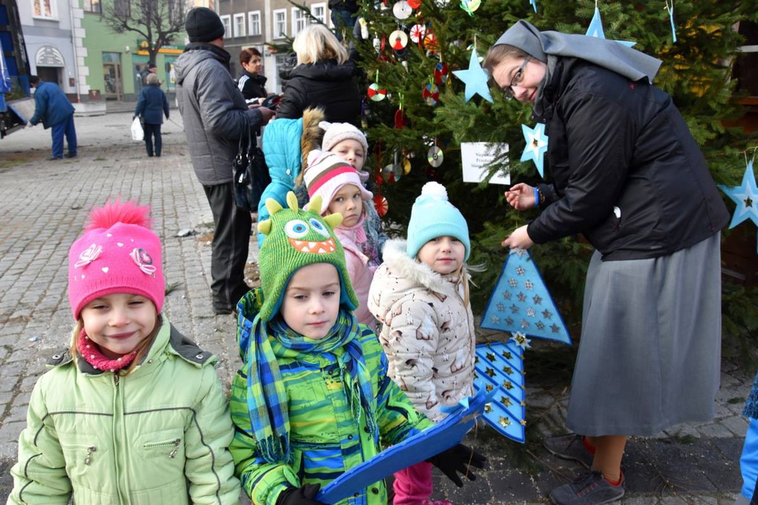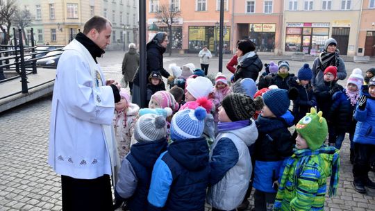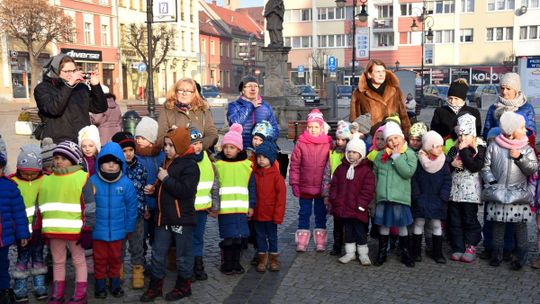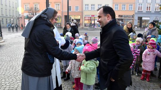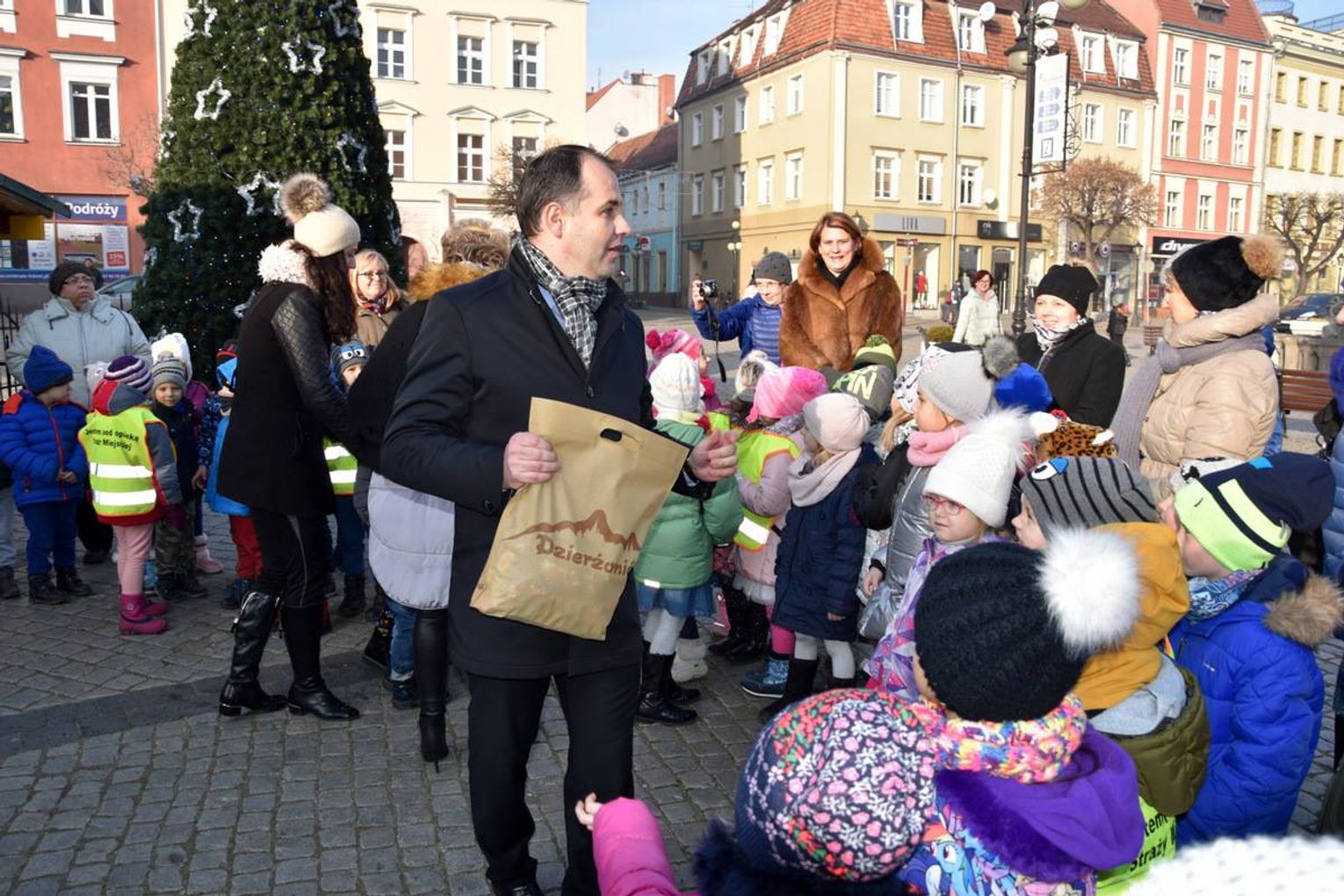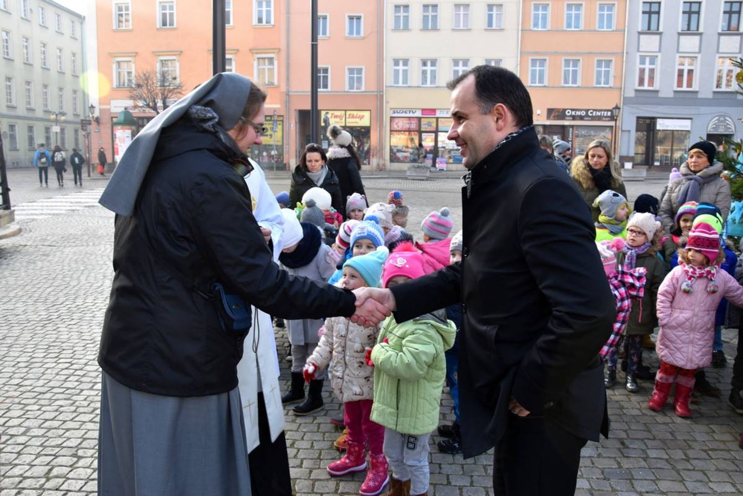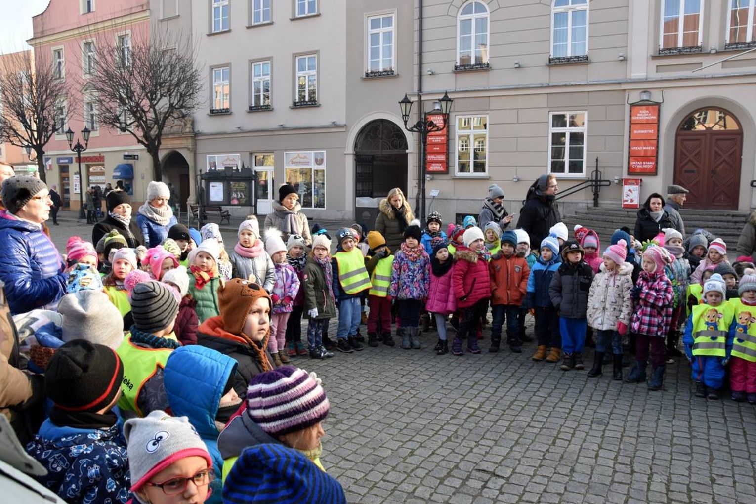 Za swój wysiłek przedszkolaki zostały nagrodzone torbami pełnymi słodkości. Otrzymały je po oficjalnym poświęceniu stojącej na rynku szopki, którego dokonał ks. Sebastian Oliszewski z parafii pw. św. Jerzego i po wspólnym odśpiewaniu kolędy. A nawet najmłodsze dzieci poradziły z tym sobie doskonale.