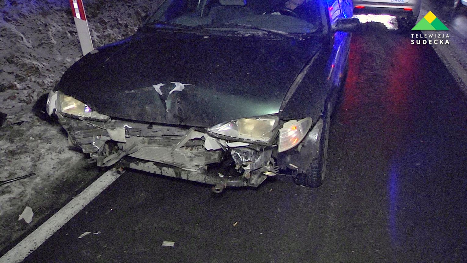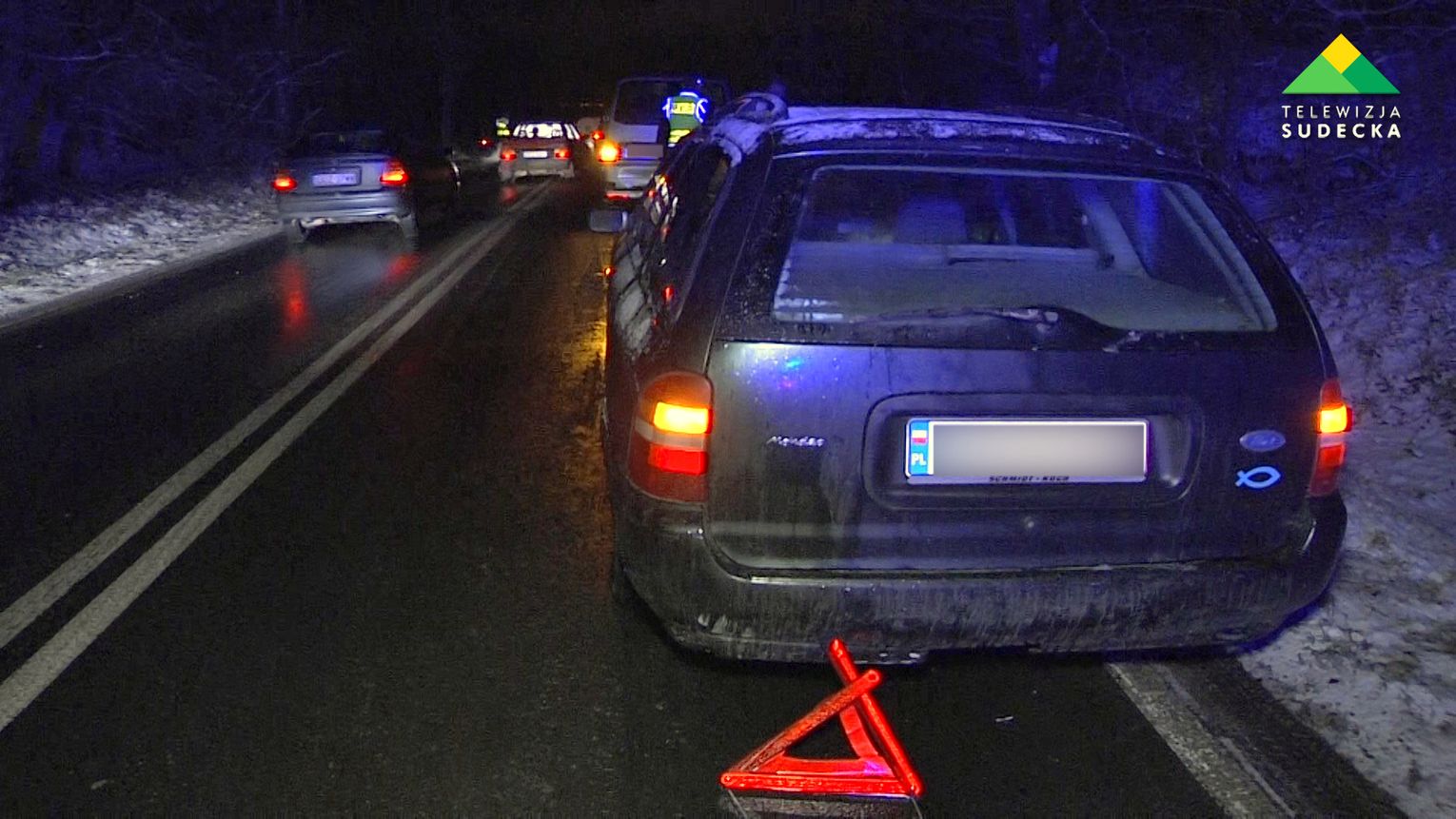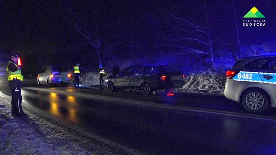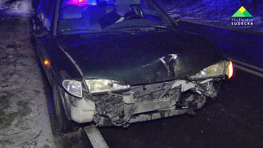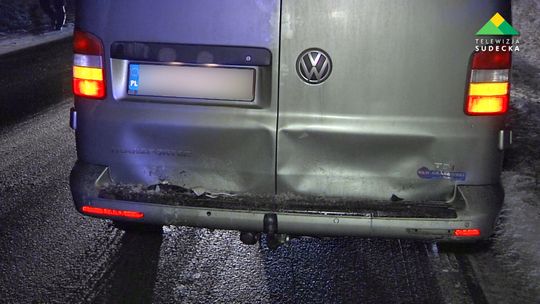 Pani prowadząca busa dojeżdżając do wzniesienia musiała się zatrzymać by przepuścić jadącą na wprost jej pasem pługopiaskarkę, która omijała wyciągany z rowu samochód osobowy. Jadący za nią samochód marki Ford Mondeo już nie zdążył się zatrzymać na oblodzonej nawierzchni i wjechał w tył samochodu marki Volkswagen. Ruch w miejscu zdarzenia odbywał się naprzemiennie którym kierowali policjanci.