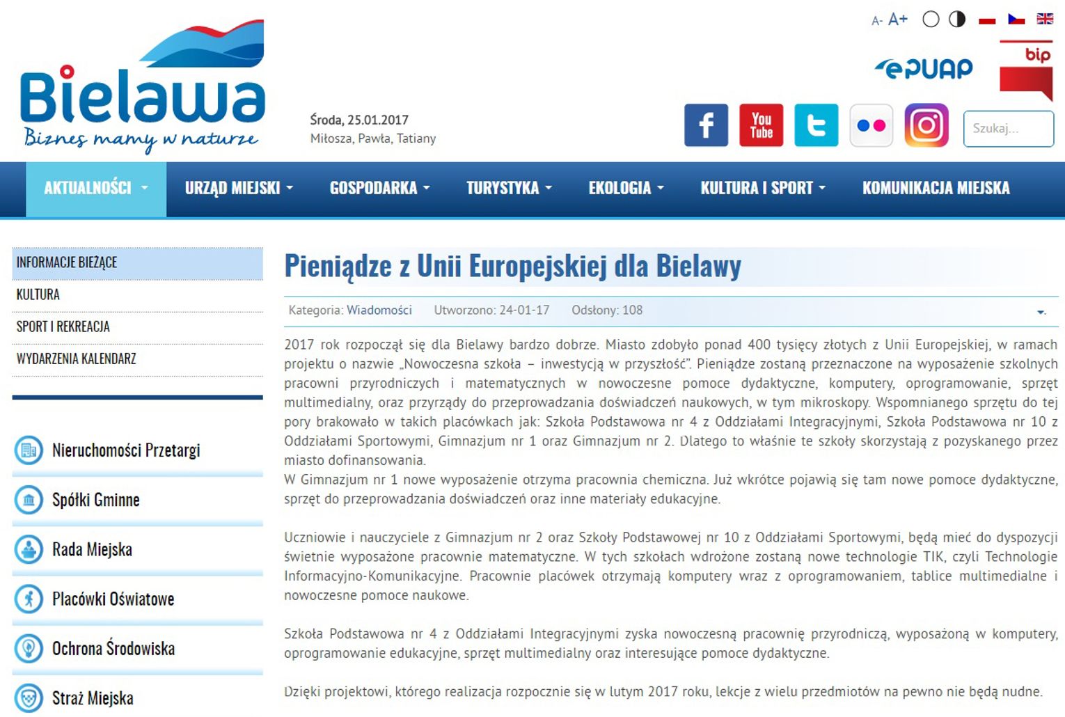1.Bielawa - http://um.bielawa.pl/pl/aktualnosci/wiadomosci/2056-pieniadze-z-unii-europejskiej-dla-bielawy